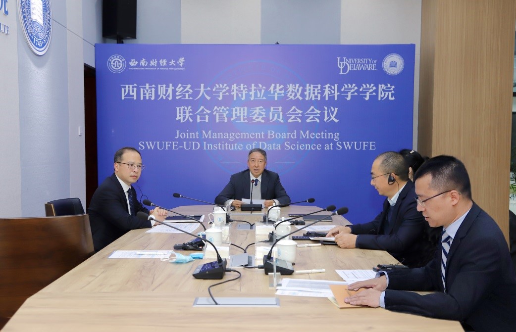 4月1日上午,西南財經大學特拉華數據科學學院聯合管理委員會召開2021-2022學年工作會議。因疫情原因,會議以視頻連線方式舉行。我校黨委副書記、校長、聯合管理委員會主席卓志,黨委常委、副校長李永強,特拉華大學校長、聯合管理委員會副主席Dennis Assanis,常務副校長Robin Morgan,兩校聯合管理委員會委員出席會議。會議由特拉華數據科學學院院長楊石磊主持。