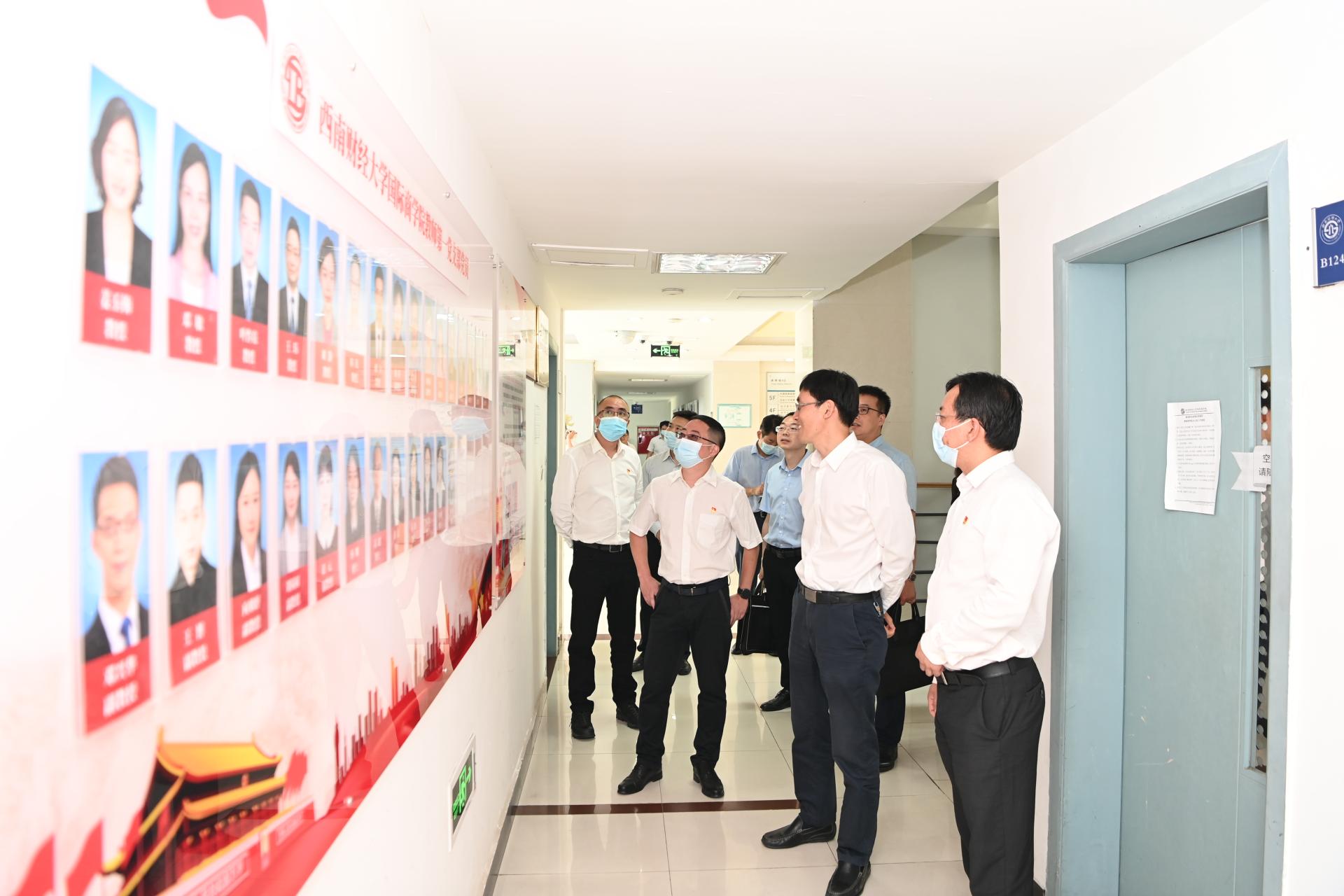 尹顯耀充分肯定學校近年來在黨建工作方面取得的成績。他表示,西南財經大學黨委對黨建工作重視程度高,工作責任落實到位,基礎工作扎實規范、細致深入,結合學校自身辦學特色,不斷發展創新,黨建工作亮點紛呈,相關經驗值得學習推廣。尹顯耀指出,希望學校進一步完善工作機制,持續強化“黨建工作品牌”建設,推進實踐經驗的制度化規范化,不斷選樹旗幟標桿,加強學生黨員培養,做好經驗推廣,切實發揮學校作為全省首批“黨建工作示范高校”的標桿引領作用。