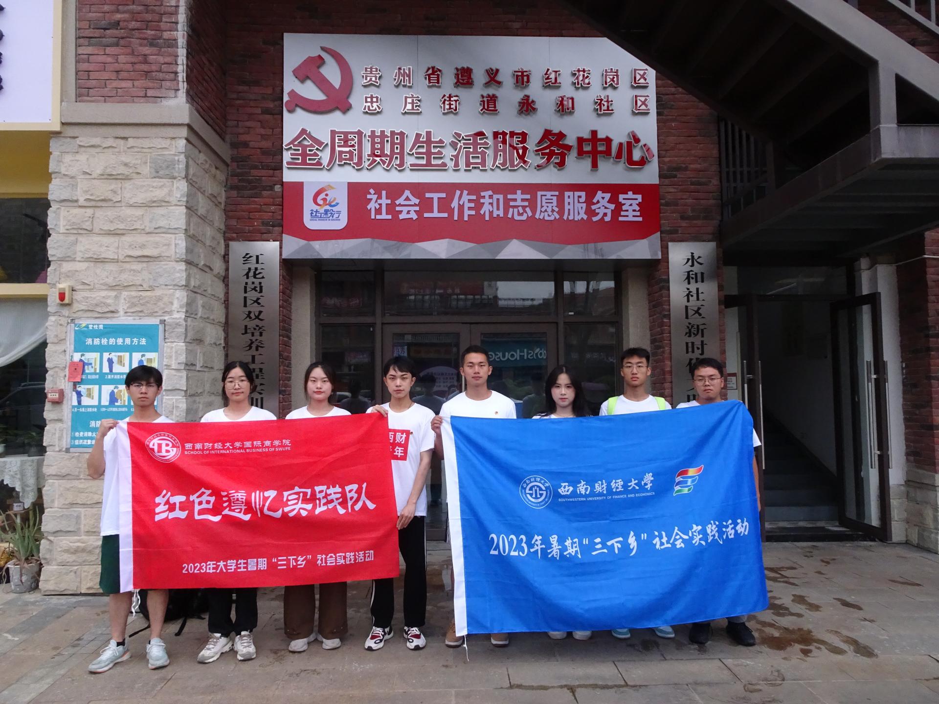 “紅色遵憶”實踐隊走進貴州遵義地區,通過“走一路,學一路,講一路”進行理論宣講與實踐學習。深入社區、軍營、田間地頭等宣講習近平新時代中國特色社會主義思想和黨的二十大精神,開展電信詐騙、財經素養、鄉村振興等知識普及,用實際行動將黨的聲音傳遞到最基層、響徹在老百姓心里;實踐隊通過鳳凰山紅軍烈士陵園獻花、拜訪抗美援朝老兵、參觀長征紅色遺址、前往軍營聯誼等形式追尋紅色足跡、傳承紅色精神。