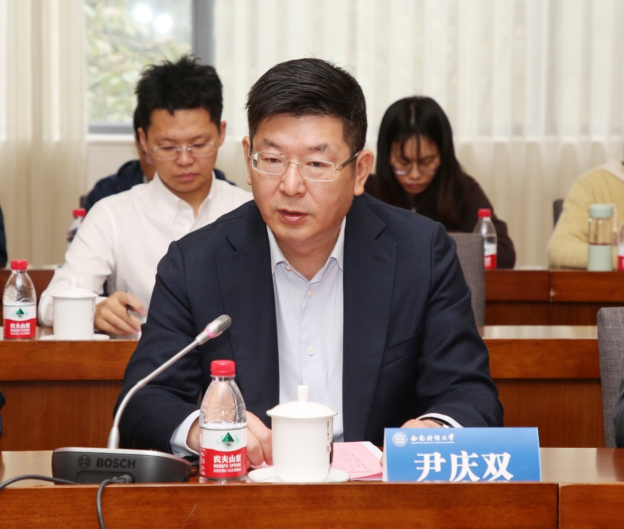 會上,尹慶雙總結了本年度我校科研項目申報和立項情況,分析了存在的問題與不足,強調要圍繞全面推進“新財經”戰略升級和加快推進“雙一流”建設需要,進一步提升有組織科研能力,聚焦重大理論和現實問題,加強工作謀劃、系統集成與資源整合,推動成果多元化與轉化應用。尹慶雙希望,本次研討會要以重大項目申報為抓手,深入交流有組織科研經驗,推動學校科研工作高質量發展,更好服務“國之大者”。