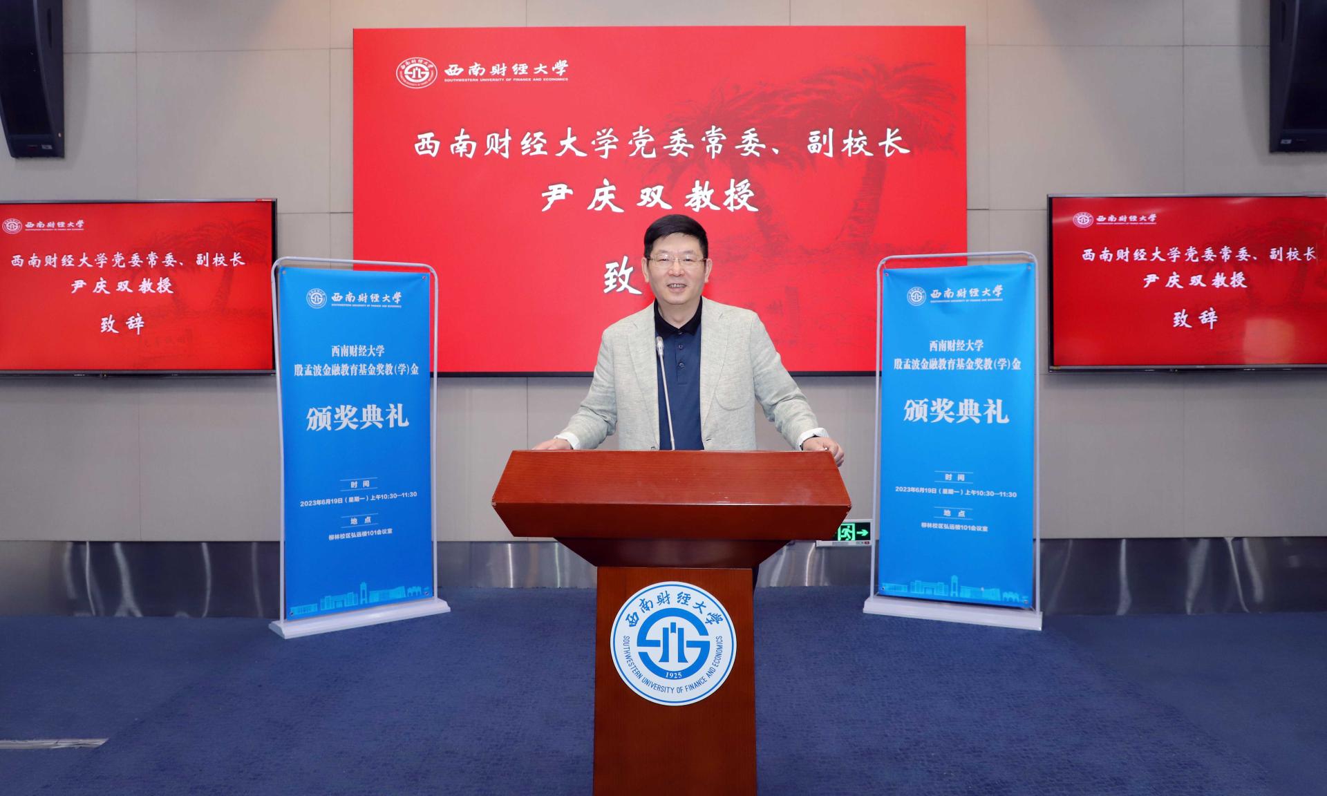尹慶雙介紹了殷孟波基金會的建立與發展,并代表學校對殷孟波及校友對學校金融學科教育事業的貢獻致以崇高謝意,向獲得本次獎教金的師生致以衷心祝賀。他從加大宣傳力度、建立獲獎師生與殷孟波教授的溝通機制等方面對基金會的未來工作提出了寶貴意見。