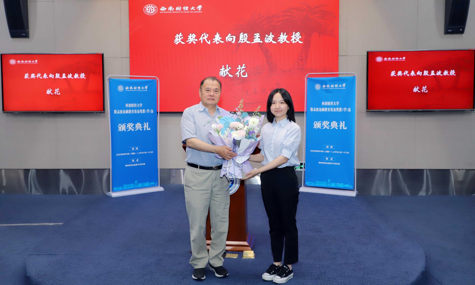 金融學院與中國金融研究院黨委書記李原宣讀了第七屆殷孟波金融教育基金獎教(學)金獲獎決定。參會領導為獲獎師生頒獎。