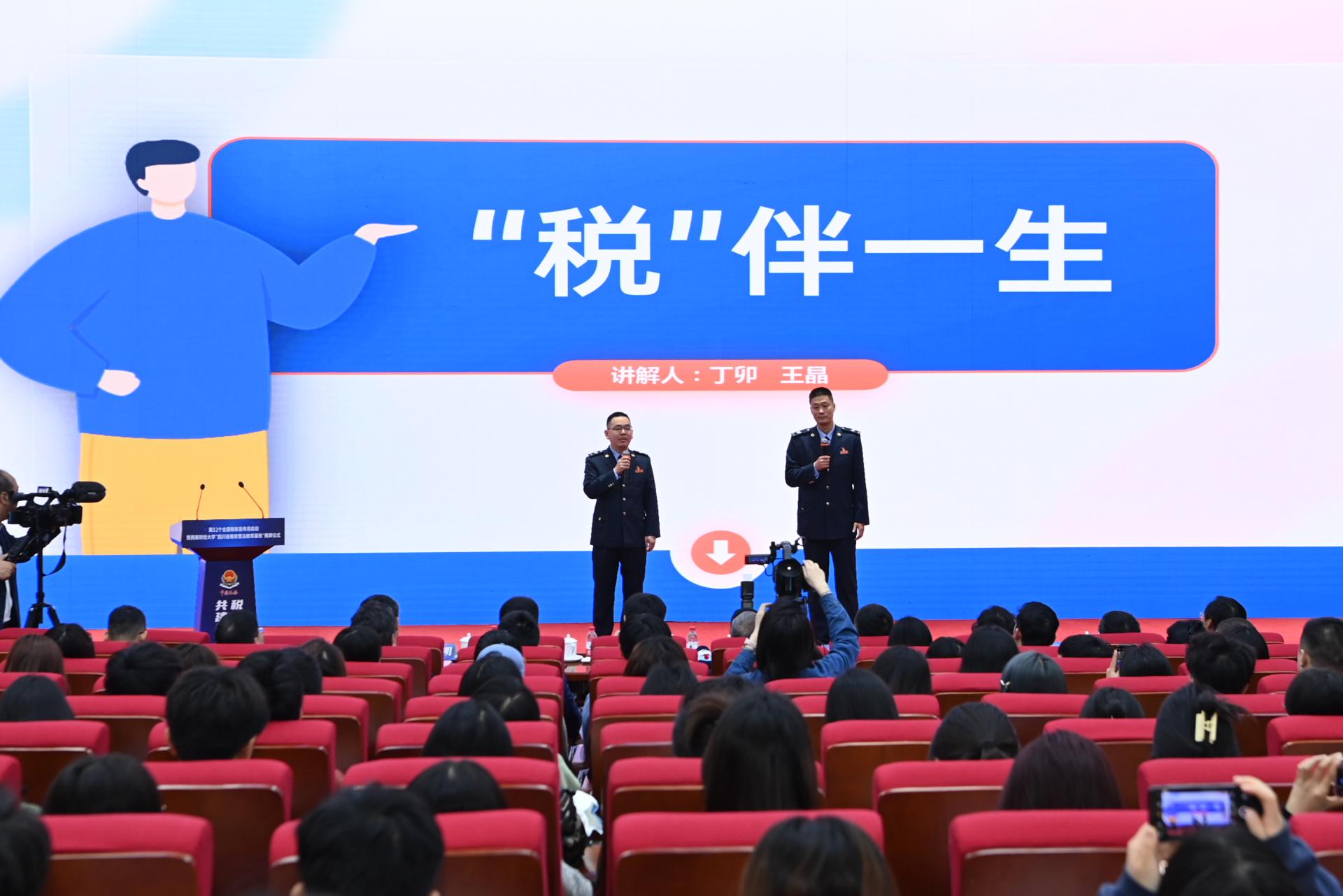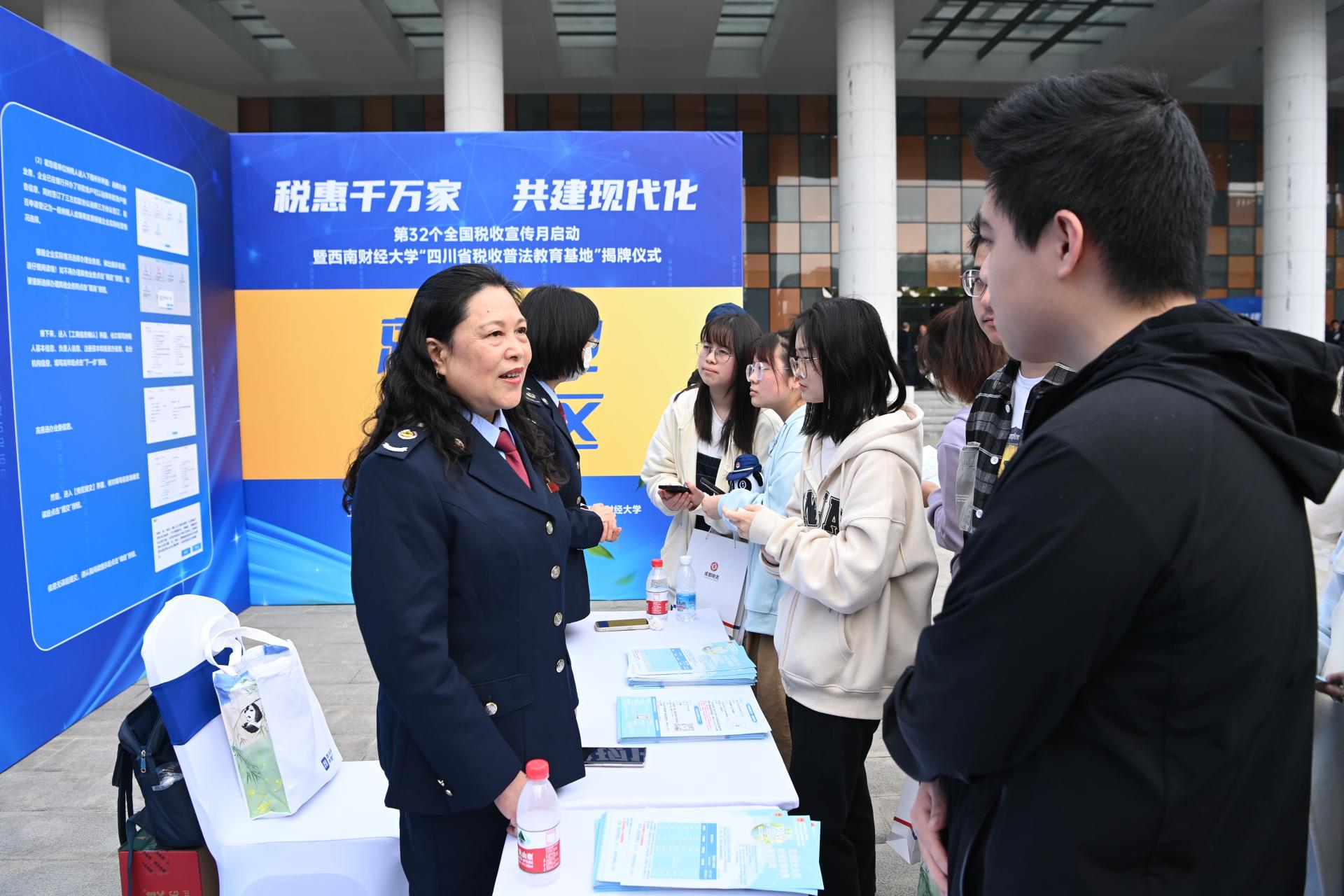 活動現場,豐富多彩的系列活動在學校師生中掀起了稅務宣傳熱潮。在針對高校學子的稅收政策大講堂中,青年稅收政策宣講員以生動有趣的相聲形式講解了稅收基本知識、系列支持大學生就業創業稅費服務舉措,并通過鮮活案例解讀大學生最為關切的稅惠政策和熱點問題。在現場設置的“智慧辦稅”“政策輔導”“稅史博覽”和“就業服務”四大展區,智能辦稅展示、一對一政策咨詢、四川稅收發展歷程介紹,以及高頻辦稅繳費事項和公務員招錄政策講解成為反響熱烈的專業稅收課堂。精心設計的稅收文創打卡區更通過稅收知識拍照分享等體驗感十足的活動吸引了眾多同學的參與。