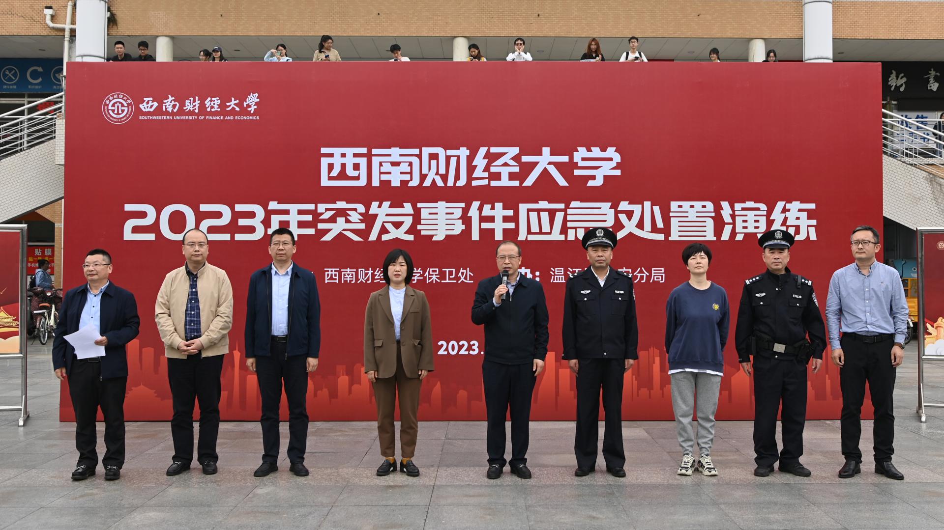 4月14日11時30分,柳林校區華新廣場。學校黨委副書記、副校長李永強一聲令下,西南財經大學2023年突發事件應急處置演練正式開啟。