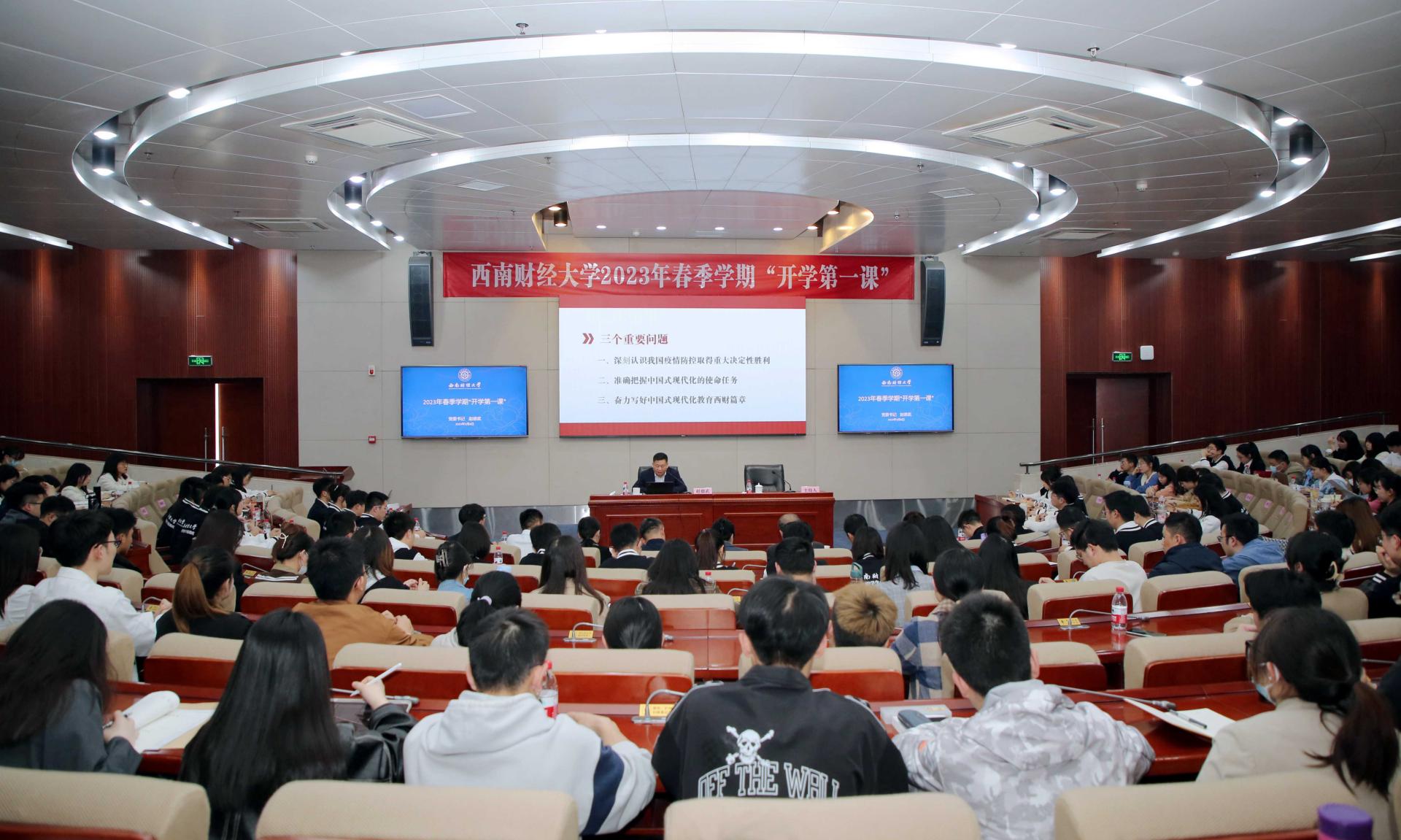 課上,趙德武圍繞疫情防控取得重大決定性勝利、中國式現(xiàn)代化的使命任務(wù)和中國式現(xiàn)代化教育西財(cái)篇章等三方面內(nèi)容,與同學(xué)們共同探討如何把握時代大勢、增強(qiáng)本領(lǐng)能力、更好成長成才。首先,他帶領(lǐng)大家回顧了黨領(lǐng)導(dǎo)人民三年抗疫的偉大實(shí)踐,深刻認(rèn)識了我國疫情防控取得重大決定性勝利。他強(qiáng)調(diào),國家取得疫情防控的重大決定性勝利,充分展現(xiàn)了“兩個確立”的決定性意義,體現(xiàn)了中國共產(chǎn)黨堅(jiān)強(qiáng)領(lǐng)導(dǎo)和我國社會主義制度的顯著優(yōu)勢;充分展現(xiàn)了中國人民和中華民族的偉大力量、大國的自覺擔(dān)當(dāng),體現(xiàn)了構(gòu)建人類命運(yùn)共同體的重大意義。三年來,學(xué)校也始終堅(jiān)持黨委統(tǒng)一領(lǐng)導(dǎo),全體黨員干部、師生員工用行動彰顯著全體西財(cái)人師生至上的政治擔(dān)當(dāng)、不畏艱難的優(yōu)秀品質(zhì)和團(tuán)結(jié)奮斗的精神風(fēng)貌,為“經(jīng)世濟(jì)民、孜孜以求”西財(cái)精神注入了新的時代內(nèi)涵。
