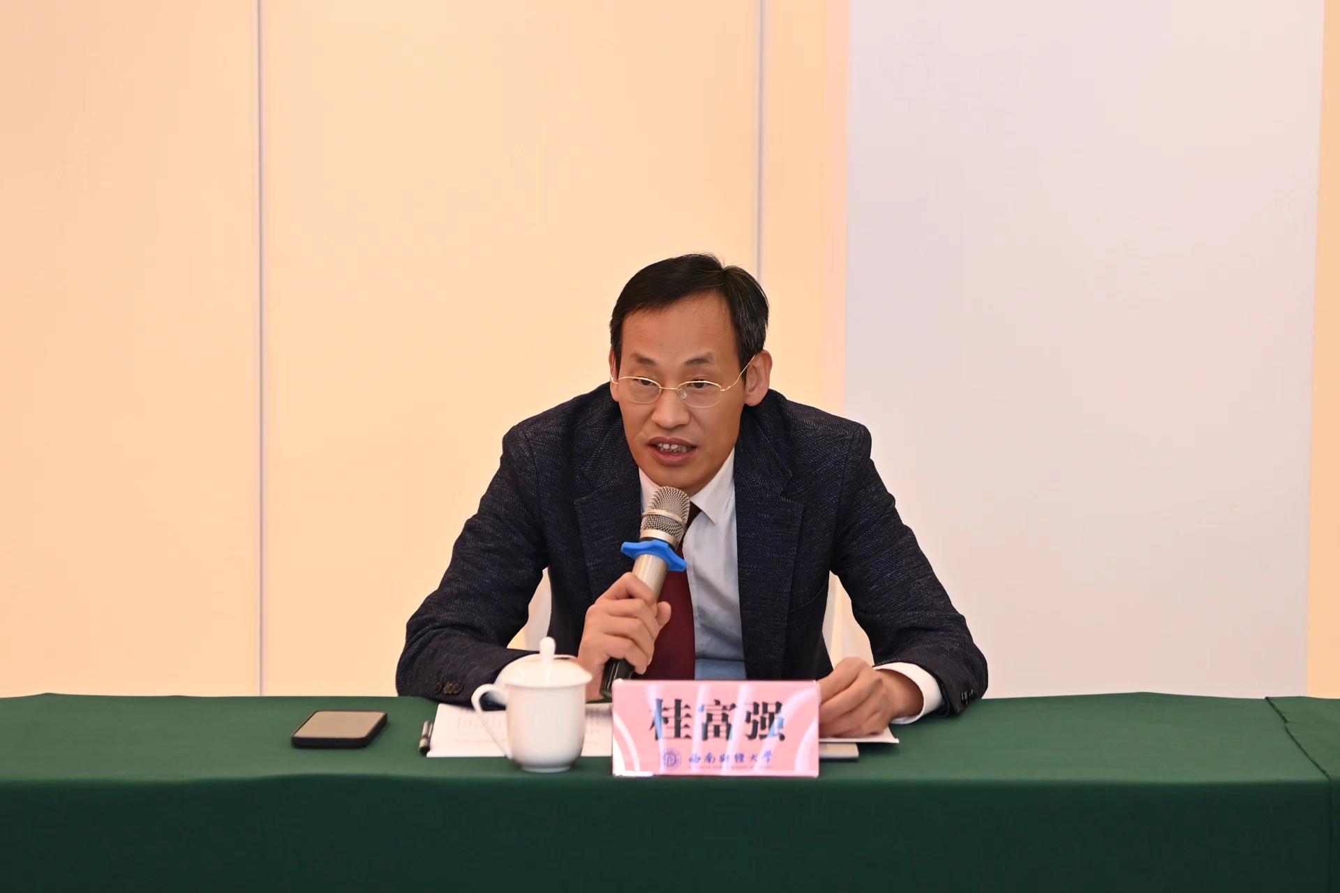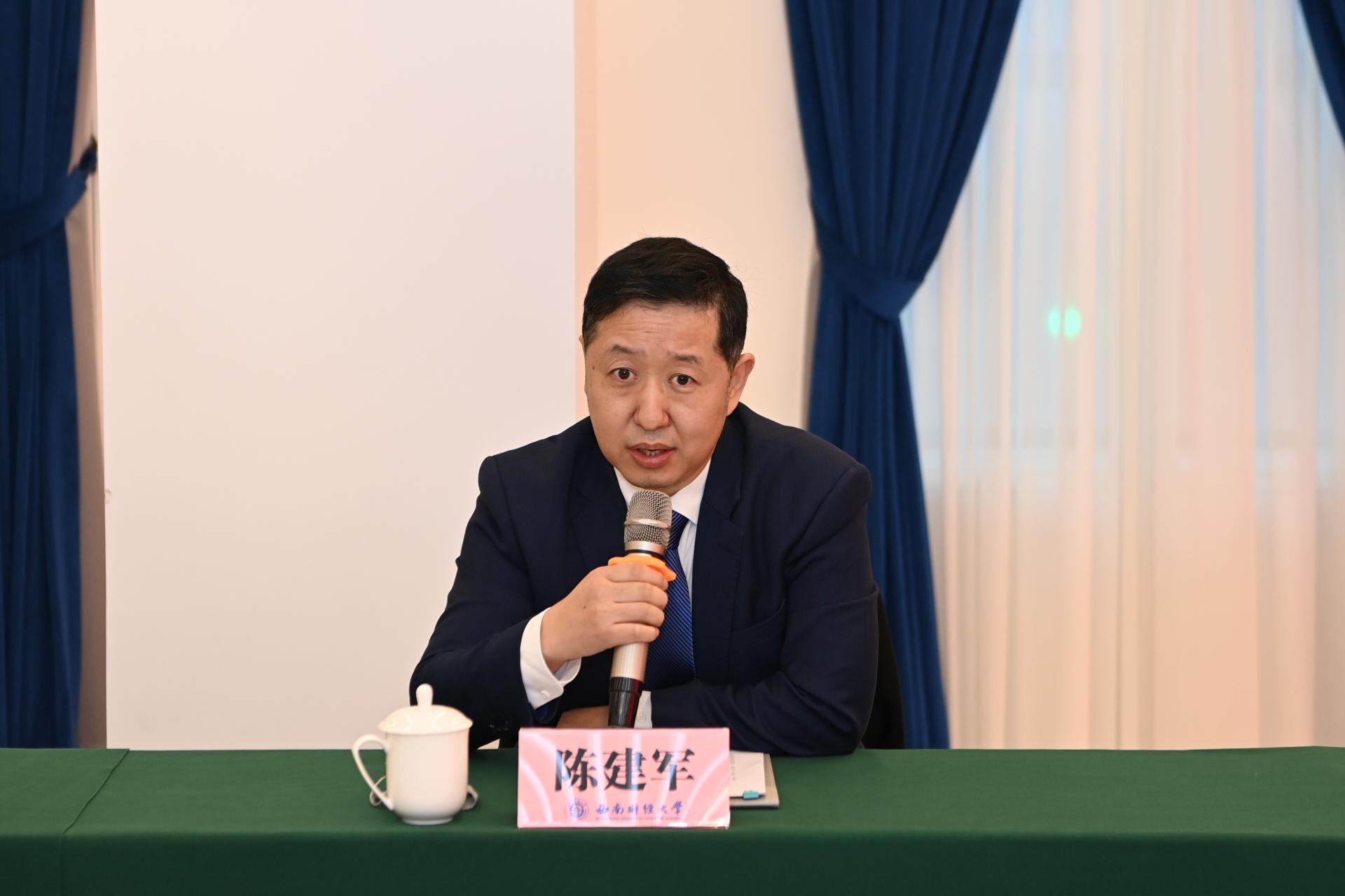 桂富強對陳建軍副市長一行表示熱烈歡迎。他指出,此次戰略合作協議的簽訂,對于雙方更好服務國家戰略、爭創世界一流、推動高質量發展具有重大而深遠的意義。他提出三點合作建議,一是服務國家戰略,共同助力治蜀興川再上新臺階;二是推動科技合作,共同助力建設科技創新平臺;三是加強人才交流,共同助力雙方事業發展戰略。他表示,西南財經大學將認真履行戰略合作協議約定各項條款,推動雙方實現優勢互補、共同發展。