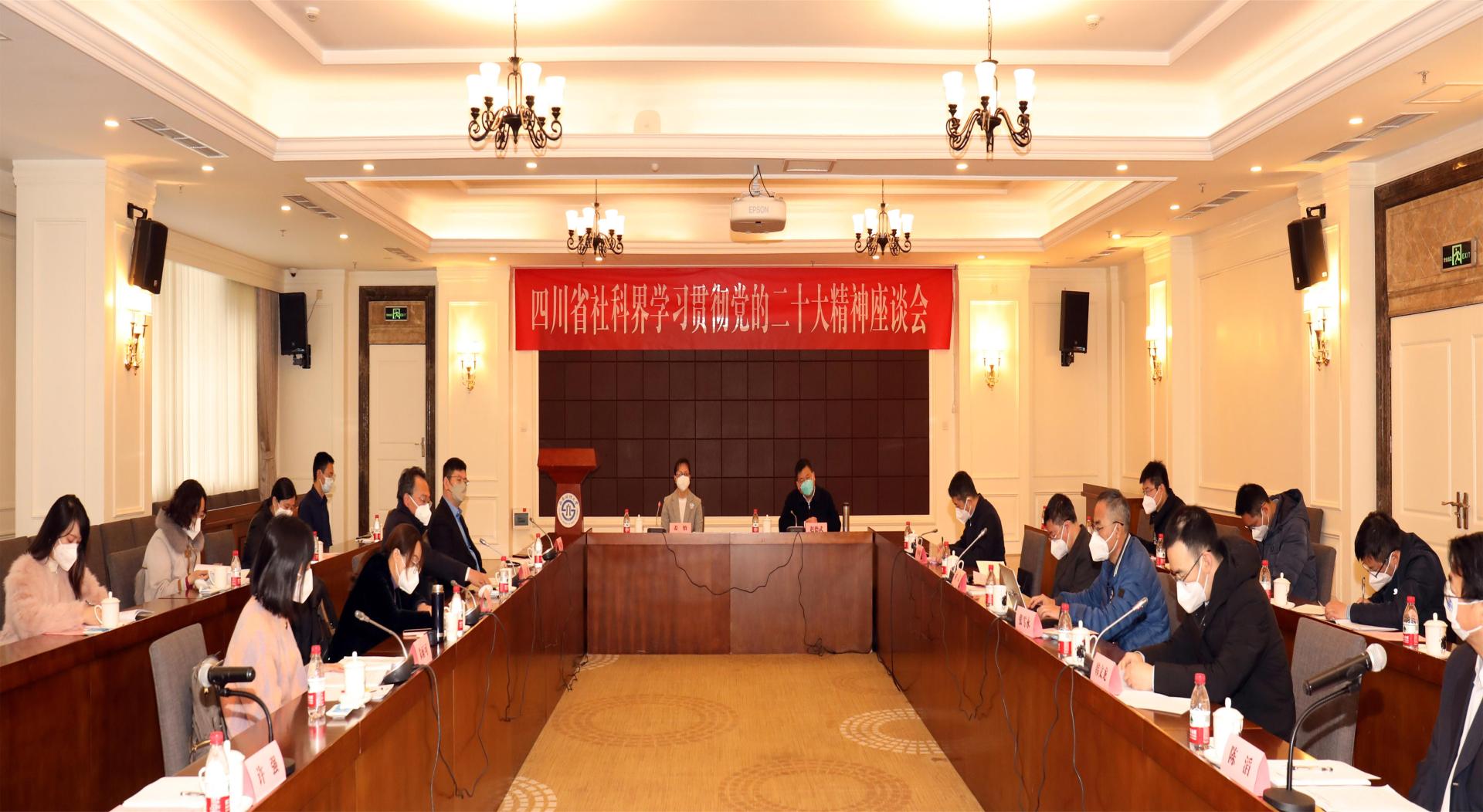 12月15日,由四川省社科聯和我校聯合舉辦的四川省社科界學習貫徹黨的二十大精神座談會在光華校區召開。四川省社科聯黨組書記、副主席姜怡,我校黨委書記、四川省社科聯副主席趙德武教授,黨委常委、副校長尹慶雙教授,四川省社會科學院副院長李中鋒教授,四川師范大學副校長王川教授等十余名專家學者出席座談會。姜怡主持座談會。
