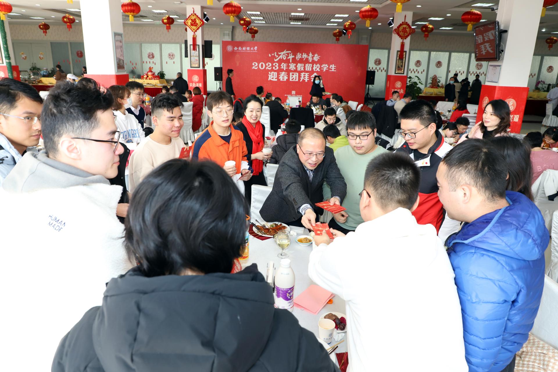 團拜會上,校領導為同學們發放了春節紅包,并送上新年祝福。