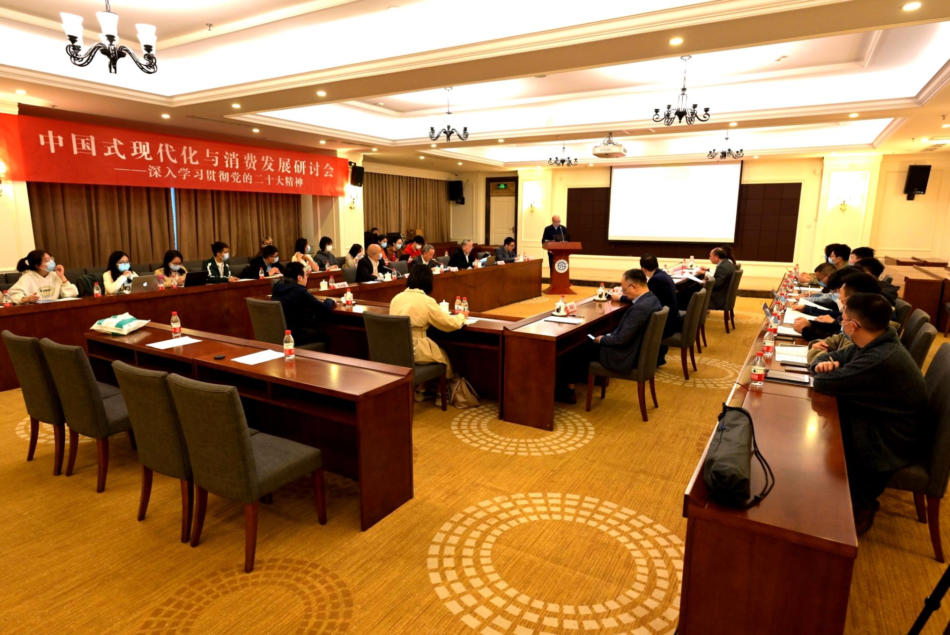 王裕國(guó)教授、楊繼瑞教授、湖南工商大學(xué)柳思維教授、湖南省教育考試院原院長(zhǎng)唐未兵教授、中國(guó)社會(huì)科學(xué)院財(cái)經(jīng)戰(zhàn)略研究院副院長(zhǎng)夏杰長(zhǎng)研究員、中國(guó)人民大學(xué)研究生院常務(wù)副院長(zhǎng)陳彥斌教授、廣東金融學(xué)院副校長(zhǎng)易行健教授、北京工商大學(xué)商業(yè)研究所所長(zhǎng)洪濤教授、《財(cái)經(jīng)科學(xué)》主編李萍教授等15位專家學(xué)者,緊緊圍繞研討會(huì)主題“中國(guó)式現(xiàn)代化與消費(fèi)發(fā)展”,緊密結(jié)合黨的二十大精神、“十四五”期間新發(fā)展格局、新消費(fèi)特點(diǎn)、國(guó)際國(guó)內(nèi)“雙循環(huán)”、全球化轉(zhuǎn)型發(fā)展等方面進(jìn)行了精辟發(fā)言和深入交流,為我國(guó)擴(kuò)大消費(fèi)需求、促進(jìn)居民消費(fèi)、保障改善民生貢獻(xiàn)新智慧,提供新思路。主題演講受到參會(huì)人員高度關(guān)注,反響熱烈。