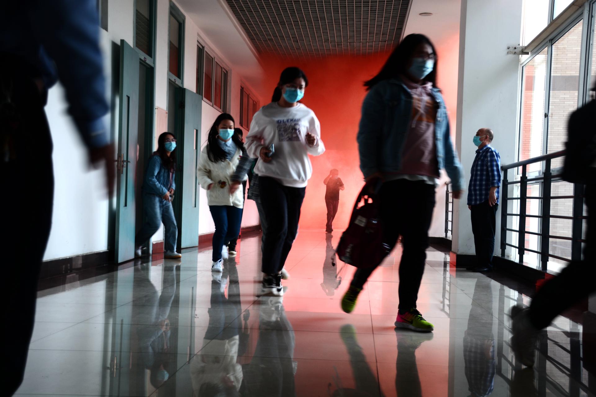 警戒組迅速拉起防護帶,維護現場秩序;滅火行動組攜帶滅火器沖進樓道,疏散組同時跟進保證通道暢通,及時疏散人群。正在上課的100多名師生,在疏散工作人員的帶領下,冒著濃煙有序撤離到樓下安全地帶;救護組對傷員臨時救助,并緊急轉移校醫院進一步救治。14:00火勢被全部撲滅,所有人員安全撤離,指揮組集合隊伍清點人數。