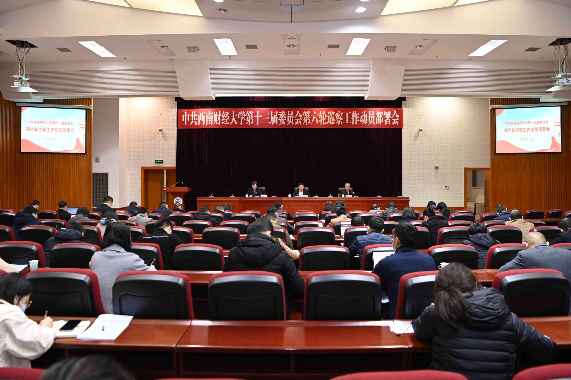 趙德武指出,巡視是推進黨的自我革命、深化全面從嚴治黨的戰略性制度安排,校內巡察是巡視向基層的延伸和拓展。開展第六輪校內巡察,是深入學習貫徹黨的二十大精神的重要部署,是鞏固拓展深化巡視整改階段性成果的重要舉措,也是學校在一屆黨委任期內實現校內巡察全覆蓋的“收官之作”,時機特殊、意義重大。要把高質量推進巡察全覆蓋放在深入貫徹落實黨的二十大精神、以中國式現代化推進中華民族偉大復興的背景下謀劃和推進,放在堅持高等教育內涵式發展、更好服務和融入新發展格局的要求下進行謀劃和推進,放在學校深化教育領域綜合改革、加快建設財經特色鮮明的世界一流大學的任務下謀劃和推進,以有力有效的政治監督確保黨的二十大各項決策部署落到實處。
