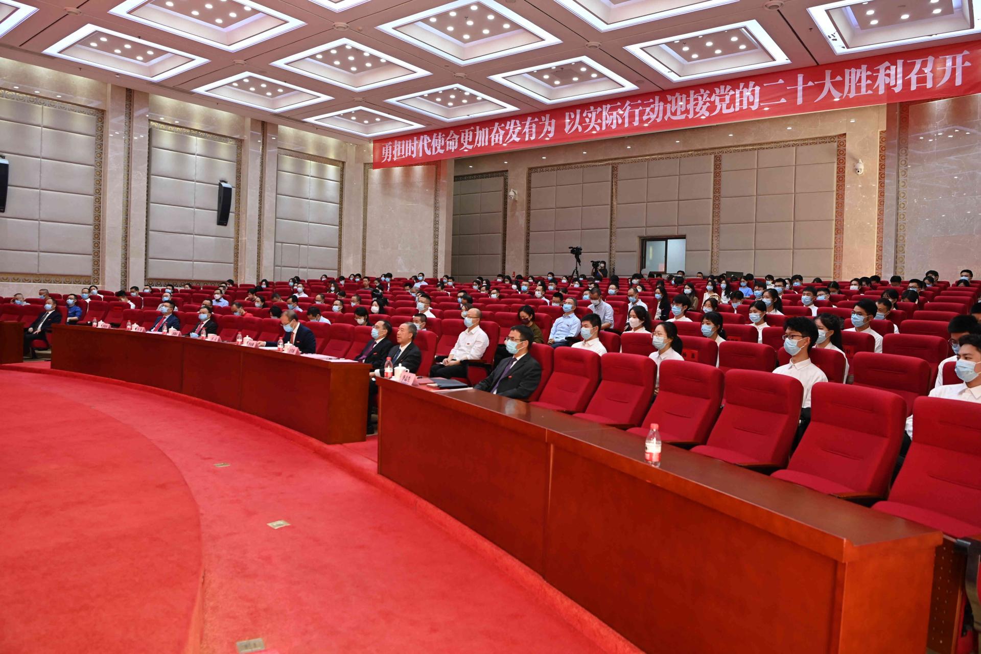趙德武強調,即將勝利召開的黨的二十大,是在全黨全國各族人民邁上全面建設社會主義現代化國家新征程、向第二個百年奮斗目標進軍的關鍵時刻召開的一次十分重要的大會,是黨和國家政治生活中的一件大事。全校各級黨組織和廣大黨員、干部師生要深刻認識開好黨的二十大的重大政治意義、歷史意義、戰略意義,堅定不移在以習近平同志為核心的黨中央領導下繼續前進,堅定不移堅持中國共產黨領導和中國特色社會主義制度,堅定不移跟黨走中國特色社會主義道路、以中國式現代化推進中華民族偉大復興。