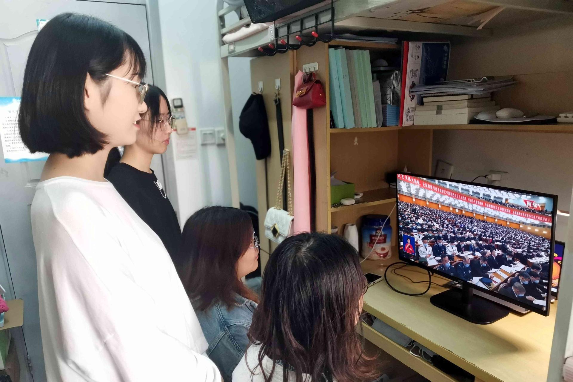 10時整,中國共產(chǎn)黨第二十次全國代表大會開幕會正式開始,西財師生跟隨直播齊聲高唱中華人民共和國國歌。開幕會全程,大家聚精會神聆聽、認真學習記錄,倍感振奮、深受鼓舞,現(xiàn)場一次次響起熱烈掌聲。