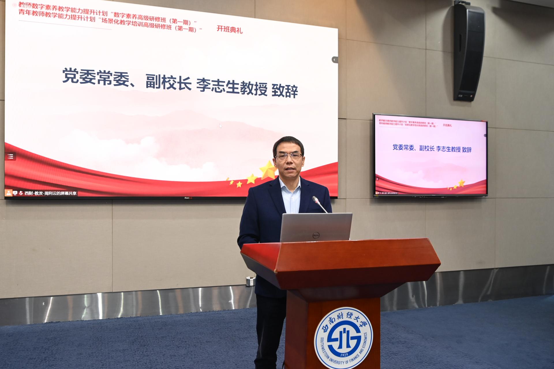 李志生指出,為進(jìn)一步貫徹新財(cái)經(jīng)戰(zhàn)略、推動(dòng)教育數(shù)字化轉(zhuǎn)型等目標(biāo),學(xué)校精心籌備了此次研修班,“數(shù)字素養(yǎng)高級(jí)研修班”主要圍繞數(shù)字經(jīng)濟(jì)和新財(cái)經(jīng)教育、智慧教學(xué)、項(xiàng)目管理開展,“場(chǎng)景化教學(xué)高級(jí)研修班”綜合利用教學(xué)觀摩、專題講座、教學(xué)案例、成果展示等方式,系統(tǒng)開展“看、聽(tīng)、練、研”培訓(xùn)。李志生希望此次研修班能幫助參培教師深化思想認(rèn)識(shí)、精進(jìn)業(yè)務(wù)本領(lǐng),并預(yù)祝首期高級(jí)研修班取得圓滿成功。