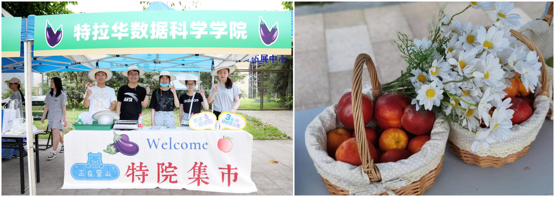 采摘結束后,學生們將一筐筐蔬菜運送到“SWUFE勞動集市”售賣。集市上,各學院(研究院)精心布置的蔬菜攤位依次排開,學生們紛紛變身“營業員”,向全校師生推銷自己家的農產品。一時間,熱鬧的集市上人頭涌動,各類叫賣聲此起彼伏,15個培養單位集中售賣的綠色無公害蔬菜在一個小時里被搶購一空。當日,在一粟堂二樓,學校專門開設“耕讀田園”豐收季美食窗口前也排起了長龍,收獲的蔬菜被做成各色美味菜式,受到了師生們的廣泛歡迎。