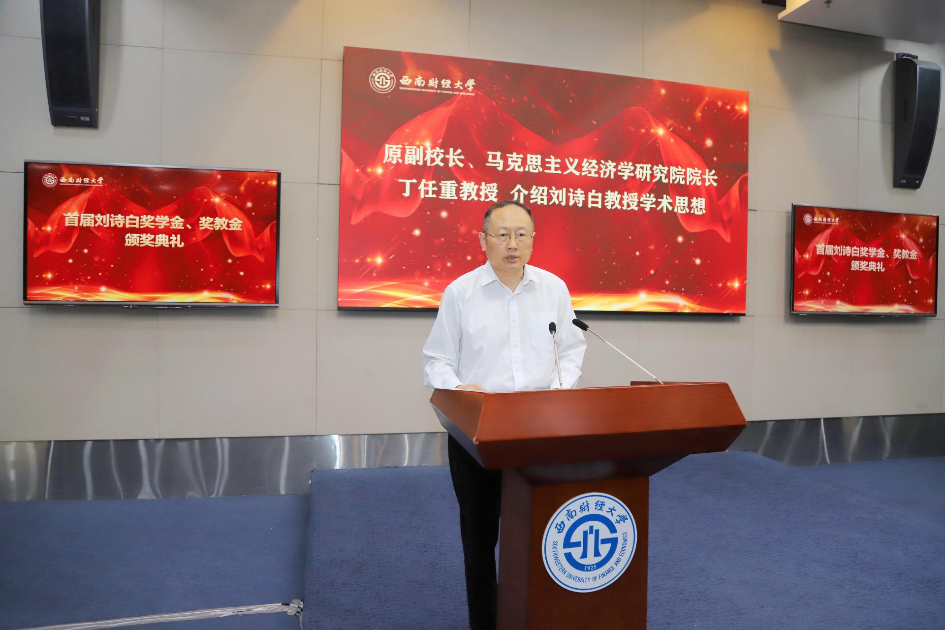6月15日上午,西南財經大學首屆劉詩白獎學金、獎教金頒獎典禮在弘遠樓101會議室隆重舉行。黨委書記趙德武教授,黨委副書記、校長卓志教授,黨委副書記曾道榮教授,黨委常委、副校長李永強教授,原副校長劉燦教授,原副校長丁任重教授,學校相關職能部門負責人,獲獎教師和獲獎學生參加典禮。李永強主持典禮。