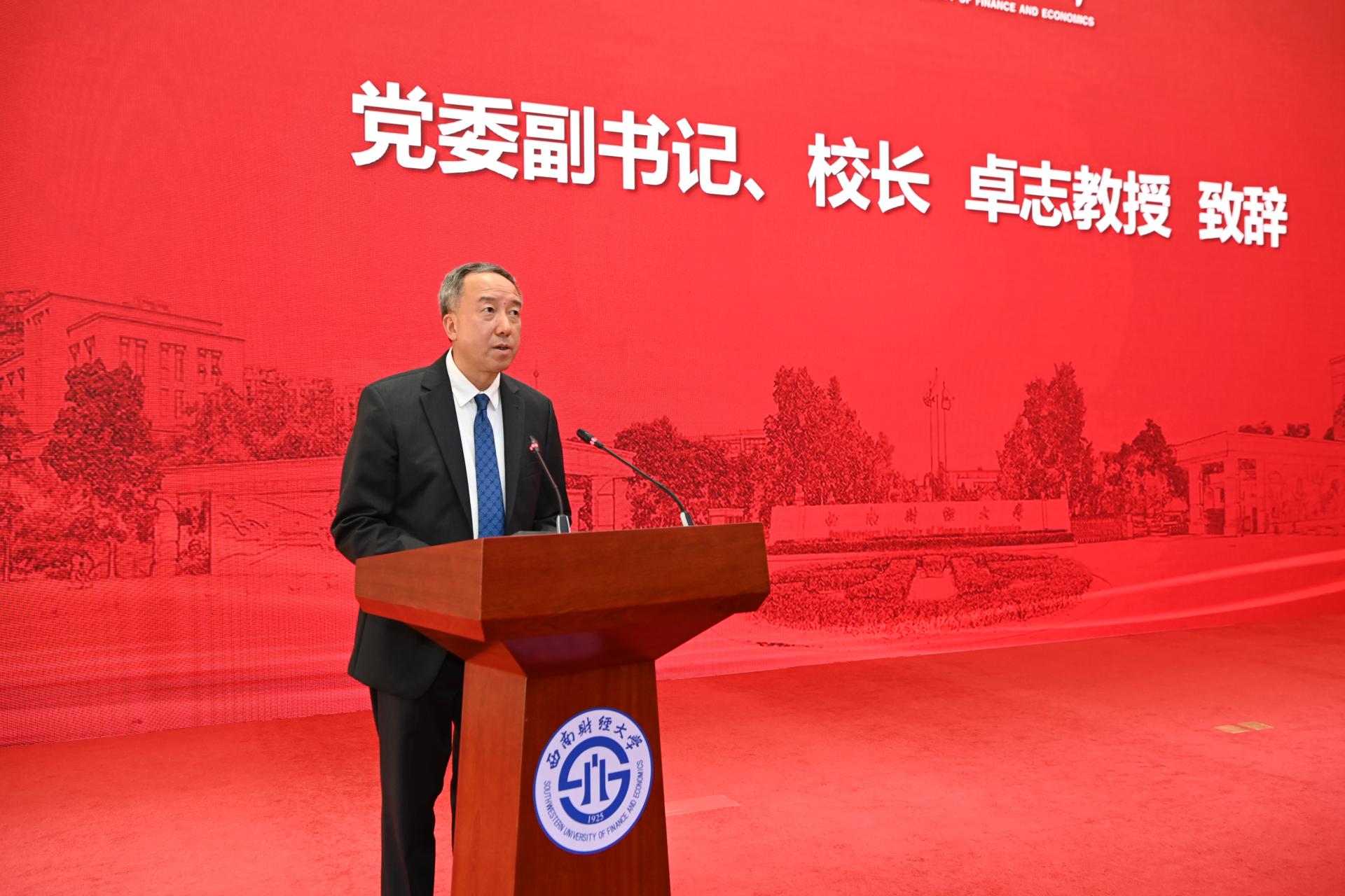 卓志在致辭中代表學(xué)校向出席論壇的嘉賓表示熱烈歡迎和衷心感謝。他指出,習(xí)近平總書記高度重視數(shù)字經(jīng)濟(jì),發(fā)表一系列重要論述,為我們做強(qiáng)做優(yōu)做大數(shù)字經(jīng)濟(jì)指明了前進(jìn)方向、提供了根本遵循。開展數(shù)字經(jīng)濟(jì)與交叉科學(xué)前沿問(wèn)題研究,是學(xué)校胸懷“國(guó)之大者”、服務(wù)國(guó)家重大需求的政治責(zé)任和歷史使命。西南財(cái)大把支撐引領(lǐng)數(shù)字經(jīng)濟(jì)發(fā)展作為“新財(cái)經(jīng)”的核心要義和未來(lái)方向,加強(qiáng)“數(shù)字經(jīng)濟(jì)”學(xué)科規(guī)劃,布局建設(shè)創(chuàng)新平臺(tái),取得一系列重要研究成果和技術(shù)突破。卓志表示,西南財(cái)大愿與各界朋友一道,圍繞推動(dòng)產(chǎn)業(yè)數(shù)字化、加強(qiáng)數(shù)字經(jīng)濟(jì)治理等問(wèn)題開展合作研究,為培育數(shù)字經(jīng)濟(jì)領(lǐng)域人才,做強(qiáng)做優(yōu)做大我國(guó)數(shù)字經(jīng)濟(jì)、推動(dòng)中國(guó)經(jīng)濟(jì)高質(zhì)量發(fā)展、建設(shè)科技強(qiáng)國(guó)數(shù)字強(qiáng)國(guó)作出新的更大貢獻(xiàn)。
