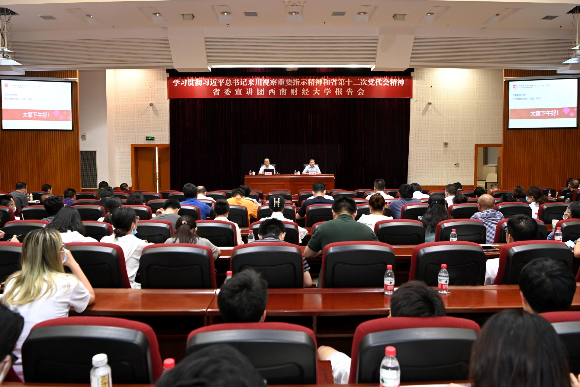 馬驍在主持報告會時指出,全校黨員干部、師生員工要深刻認識把握習近平總書記來川視察和省第十二次黨代會的重大意義,切實把思想和行動統一到習近平總書記重要指示精神上來、統一到省黨代會決策部署上來,旗幟鮮明講政治、聚精會神抓發展、用心用情惠民生、堅守底線保安全,確保學習宣傳貫徹各項工作走深走實、見行見效,為治蜀興川再上新臺階貢獻更多西財力量,奮力譜寫新時代新征程學校高質量發展新篇章,以實際行動迎接黨的二十大勝利召開。
