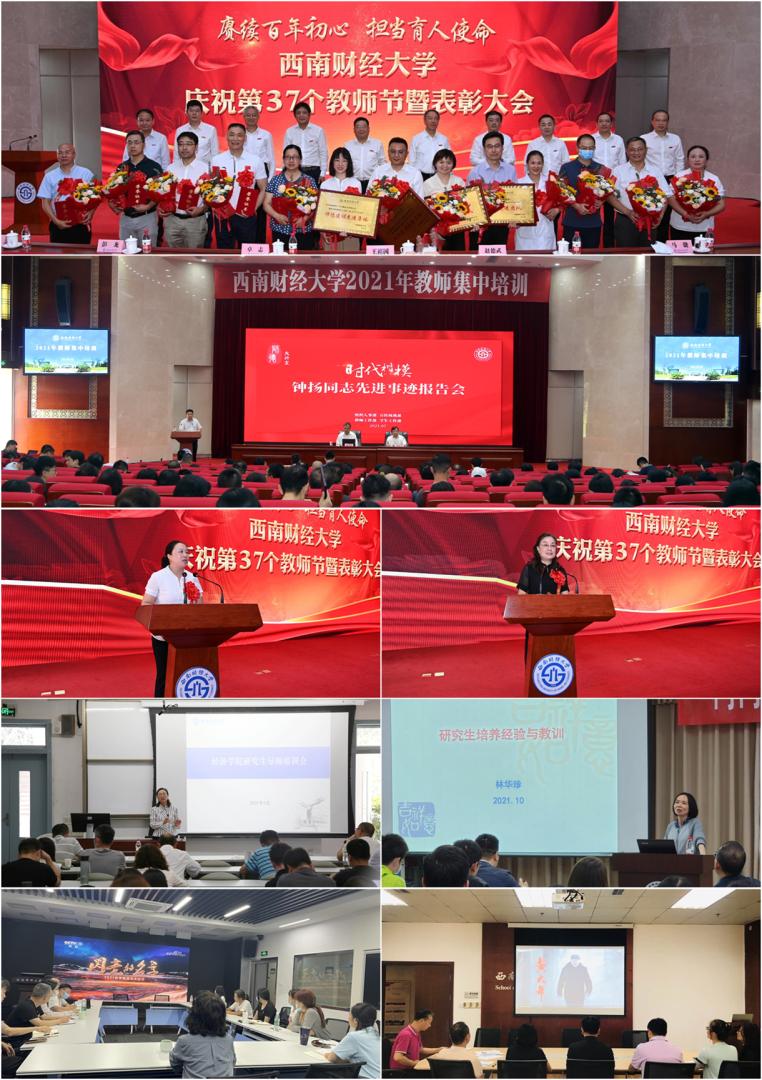 充分發揮先進典型的示范引領作用,大力弘揚西財歷代優秀教師的家國情懷和愛國奉獻精神,開展優秀典型先進事跡學習宣傳,舉辦“師德大講堂—時代楷模鐘揚同志先進事跡報告會”“曾康霖教授從教60周年學術思想”研討會、“西財紅色講堂”“名家進思政課堂”等活動,邀請師德典型、黨員榜樣等進校園上講臺,組織教師觀看《黃大年》《張桂梅:盡畢生之力托起大山希望》等專題紀錄片及2021年度“尋找最美教師”節目,激勵廣大教師見賢思齊。隆重舉行慶祝第37個教師節暨表彰大會,持續選樹師德先進個人(團隊)、優秀教師等立德樹人先進典型,組織師德楷模、教學名師、師德先進個人等作專題報告,通過學校主頁、校報、官微“西財人物”“ 我寫我師”“ 師者·初心”等專欄深入挖掘、宣傳優秀教師立德樹人的感人故事,用身邊榜樣傳遞師德力量,引導廣大教師從“被感動”到“見行動”。