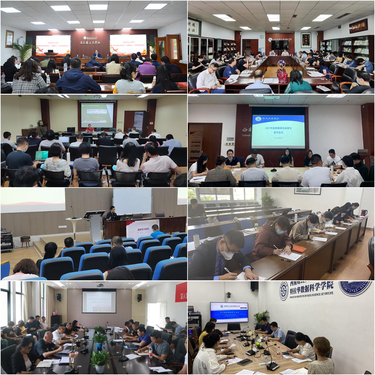持續推動師德專題教育與黨史學習教育深度融合,深入開展校院兩級理論中心組學習、教職工理論學習、專題讀書班、專題座談會、教師和“思政骨干”專項培訓班,以及“三會一課”、主題黨日、專題組織生活會等,舉辦專題輔導報告180余場、專題黨課170余場、“七一”重要講話精神宣講100余場,組織“學四史·守初心—追尋革命精神,傳承紅色文化”線上輔導講座100余場,深入學習黨的百年奮斗歷程、光榮傳統、寶貴經驗和偉大成就,感悟偉大建黨精神,凝聚奮進力量。通過組織參觀校史館、觀紅色電影、舉辦主題攝影展、演講比賽、征文比賽、“知行天下”教師社會實踐調研等活動持續深化黨史學習教育,引導支持廣大教師在學深悟透黨的創新理論的同時深入基層了解國情黨情社情民情,做到知史愛國、知史愛黨,不忘立德樹人初心,踐行為黨育人為國育才使命。