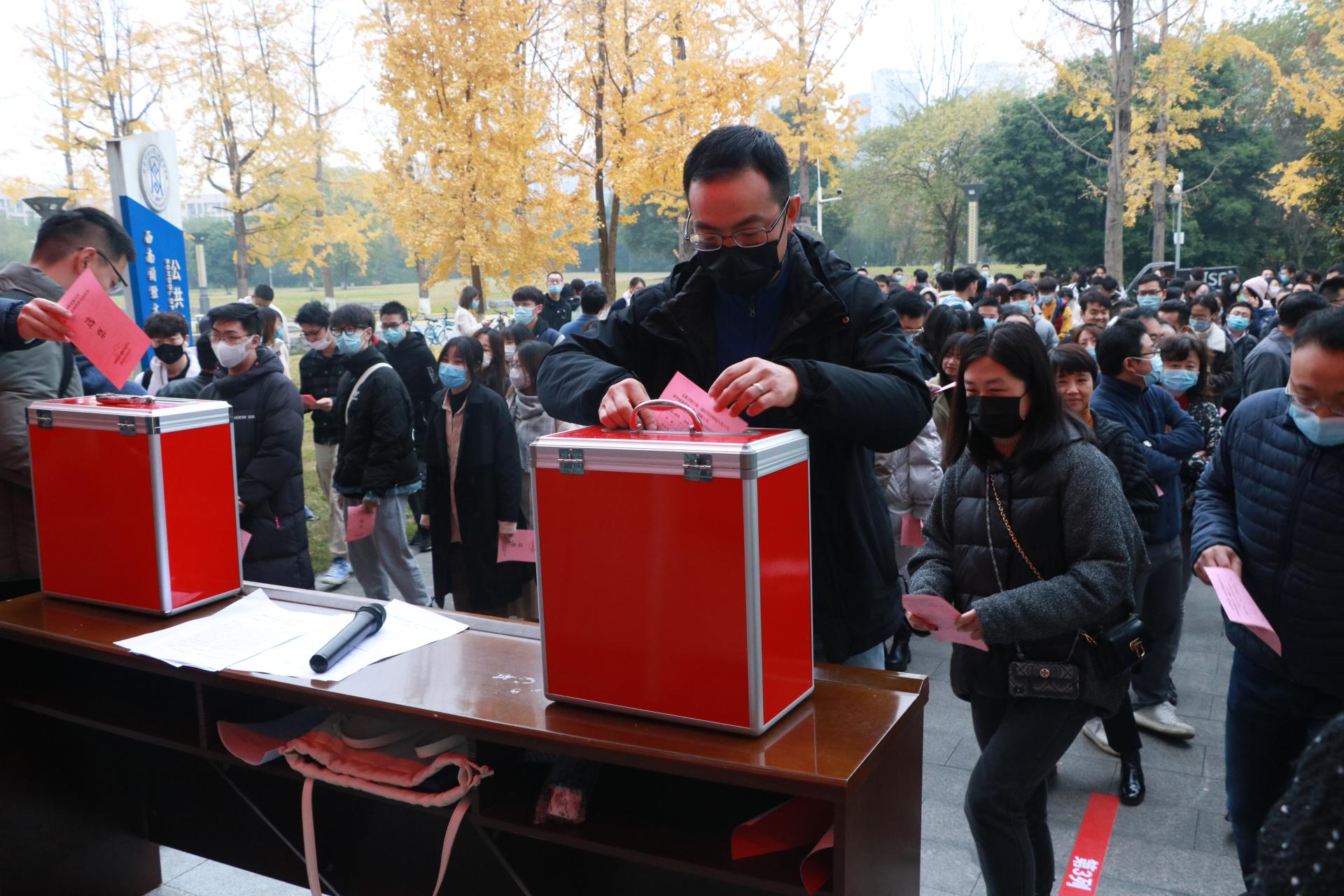 11月25日,光華轄區財大第二選區西南財經大學投票站投票工作在光華校區舉行,光華校區教職工、離退休教職工以及校內居民共1306人參與了投票。