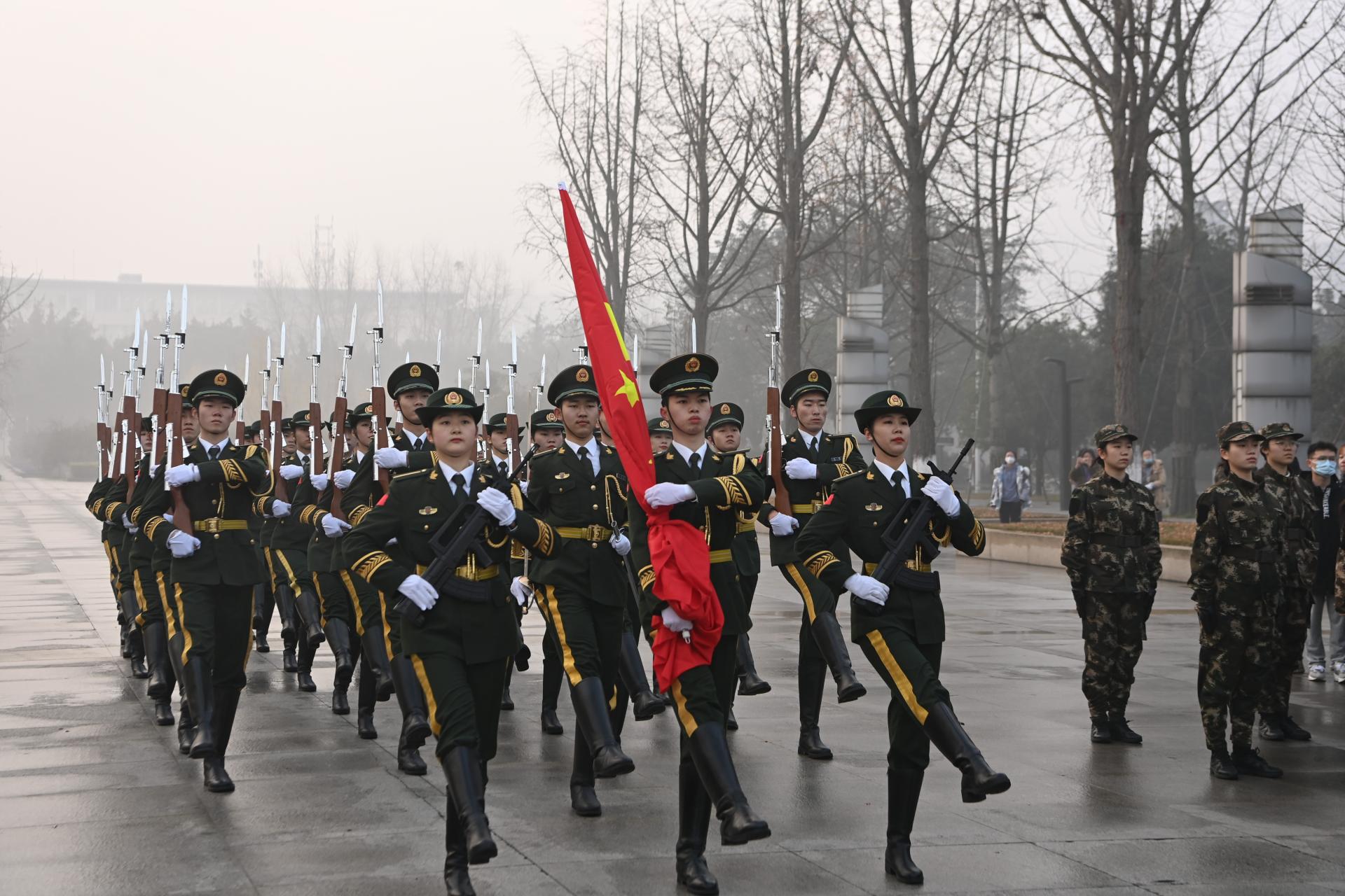 8時30分,升國旗儀式正式開始。國旗班成員邁著鏗鏘有力、整齊劃一的步伐,護送著國旗緩緩入場。伴隨著雄壯激昂的國歌聲,鮮艷的五星紅旗冉冉升起,迎著新年的朝陽高高飄揚。師生們莊嚴肅立,心懷崇敬向國旗行注目禮,共同祈愿偉大祖國繁榮昌盛,共同慶祝充滿希望的2022年的到來。