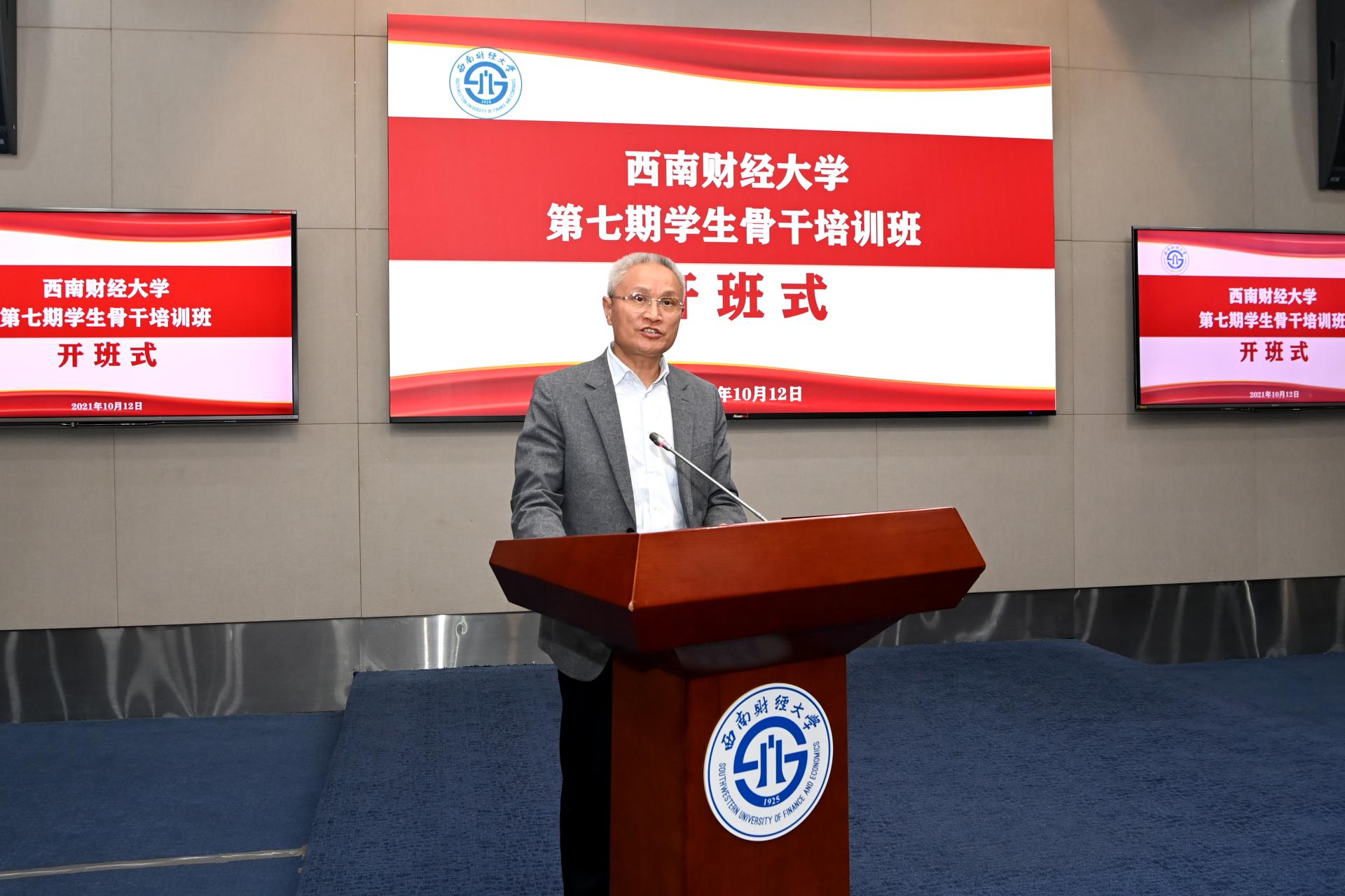 儀式上,趙德武為第七期學生骨干培訓班授旗,寄語第七期學員要堅定理想信念、錘煉過硬本領、不斷追求卓越,做擔當民族復興大任的時代新人。學生骨干培訓班班主任曾道榮對第七期學員提出期望,希望學員們堅定理想信念,發揚奮斗精神,做有志氣、有骨氣、有底氣的時代新人。與會成員共同觀看了前六期結業學員代表對第七期新學員的祝福視頻。周祿軍同學代表新一期學員進行發言,表示要牢記“樹雄心大志,當時代先鋒”的班訓,以卓越追求與實際行動踐行“請黨放心,強國有我”的青春誓言。