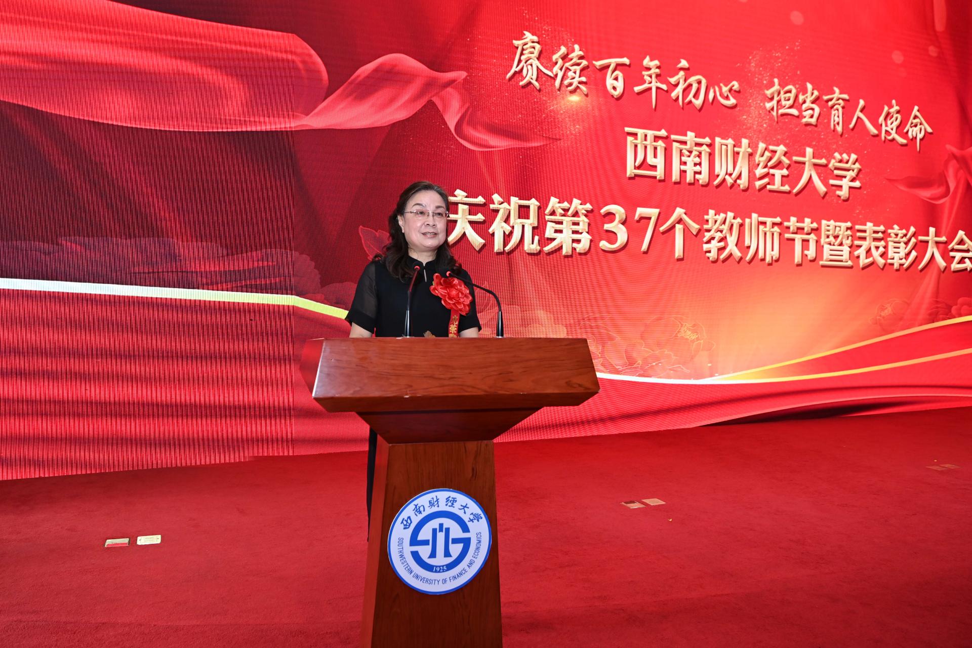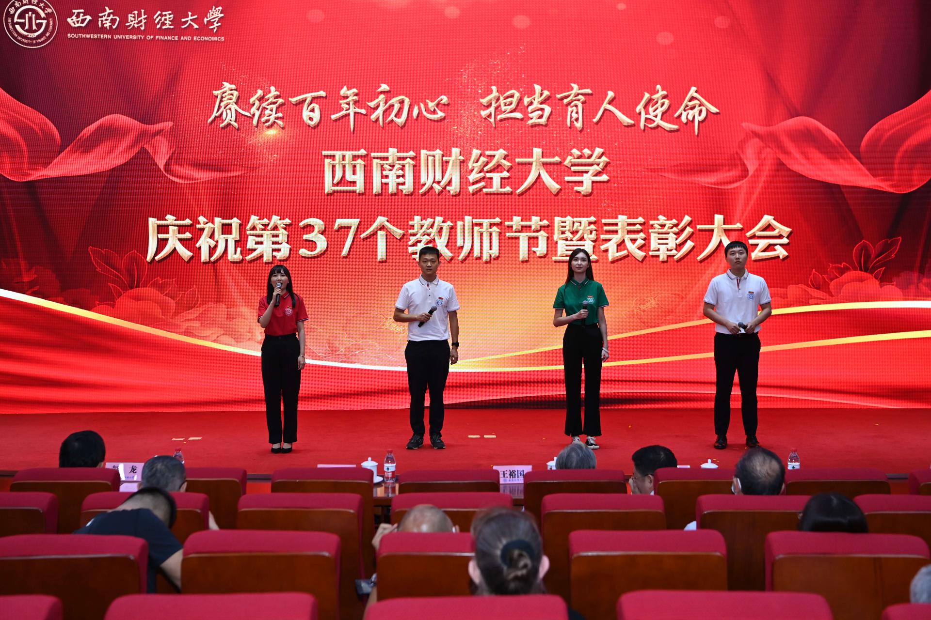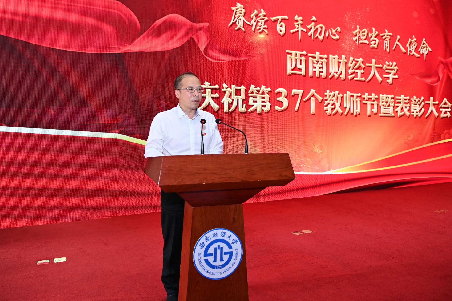 會(huì)上,學(xué)生代表李齊民宣讀賀信,感恩全體教師的辛勤付出,并獻(xiàn)上崇高敬意和誠(chéng)摯祝福,立志踐行請(qǐng)黨放心、強(qiáng)國(guó)有我的青春誓言,將“經(jīng)世濟(jì)民、孜孜以求”的西財(cái)精神播撒四方。