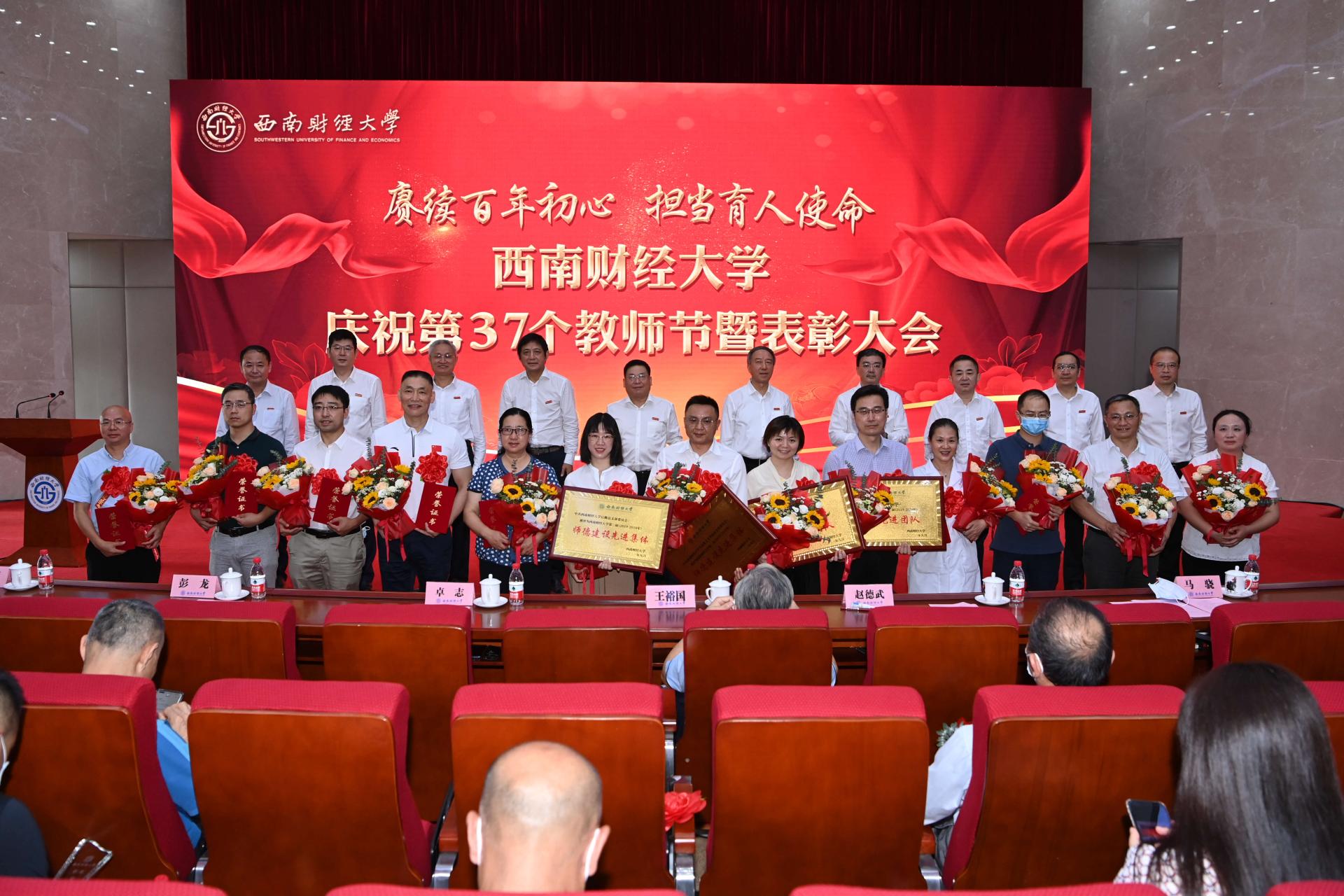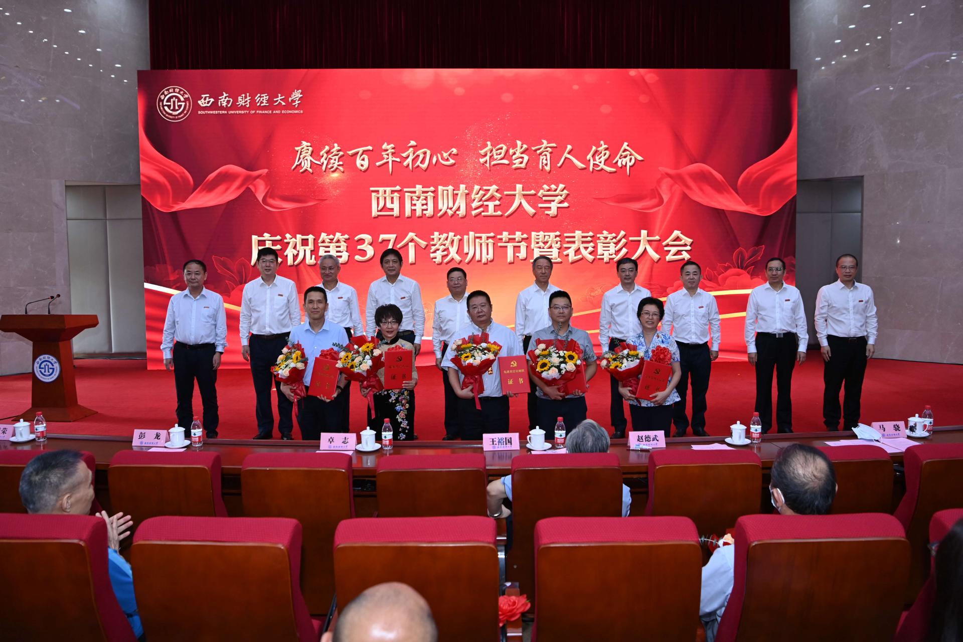 9月10日下午,學(xué)校在弘遠(yuǎn)樓105會(huì)議室隆重舉行慶祝第37個(gè)教師節(jié)暨表彰大會(huì),表彰先進(jìn)集體和優(yōu)秀個(gè)人,舉行榮休及從教30周年紀(jì)念儀式。學(xué)校老領(lǐng)導(dǎo)王裕國(guó),黨委書(shū)記趙德武,黨委副書(shū)記、校長(zhǎng)卓志,黨委常委、常務(wù)副校長(zhǎng)彭龍,黨委副書(shū)記馬驍、曾道榮,黨委常委、副校長(zhǎng)歐兵、尹慶雙、史代敏、張邦富、李永強(qiáng),獲獎(jiǎng)集體和個(gè)人,職能部門及學(xué)院(中心)代表,民主黨派代表,港澳臺(tái)及外籍教師代表,離退休教職工及新入職教職工代表參加大會(huì)。卓志主持大會(huì)。