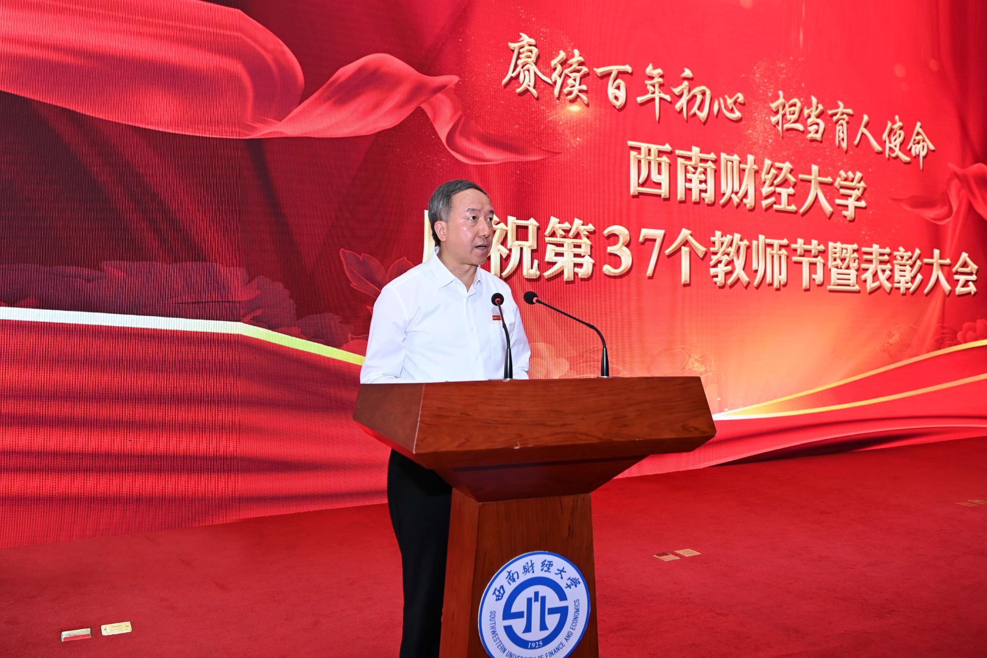 今年有33名教職工榮休,14名教職工從教滿30周年,133名新生力量加入西財(cái)。趙德武代表學(xué)校黨委向老教師致以誠(chéng)摯感謝和崇高敬意,向新進(jìn)教師表示熱烈歡迎。他指出,人才強(qiáng)校是學(xué)校的核心戰(zhàn)略,人才隊(duì)伍建設(shè)始終是學(xué)校最重要的工作。希望西財(cái)教師不忘立德樹(shù)人初心,牢記為黨育人、為國(guó)育才使命,厚德修身、甘當(dāng)人梯,為加快教育現(xiàn)代化、建設(shè)教育強(qiáng)國(guó)、辦好人民滿意的教育作出新的更大貢獻(xiàn)。