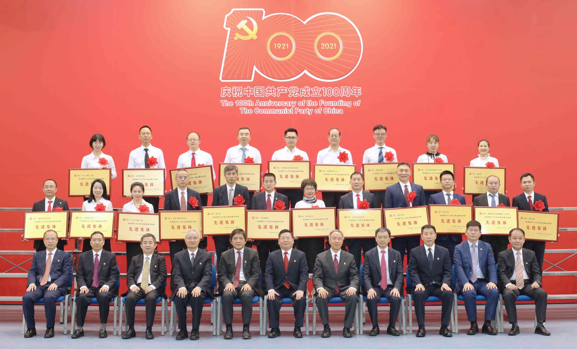 黨委副書記曾道榮宣讀學校黨委關于表彰抗擊新冠肺炎疫情先進集體和個人的決定。黨委常委、副校長史代敏宣讀學校黨委關于表彰2021年“兩優一先”的決定并主持主題黨日活動。機關黨委等28個黨組織被授予“先進基層黨組織”光榮稱號,曹先希等35名同志被授予“優秀共產黨員”光榮稱號,朱一強等15名同志被授予“優秀黨務工作者”光榮稱號。黨委辦公室等30個單位榮獲“抗擊新冠肺炎疫情先進集體”榮譽稱號,艾鴻等110人榮獲“抗擊新冠肺炎疫情先進個人”榮譽稱號。校領導為受表彰集體代表和優秀個人頒獎。