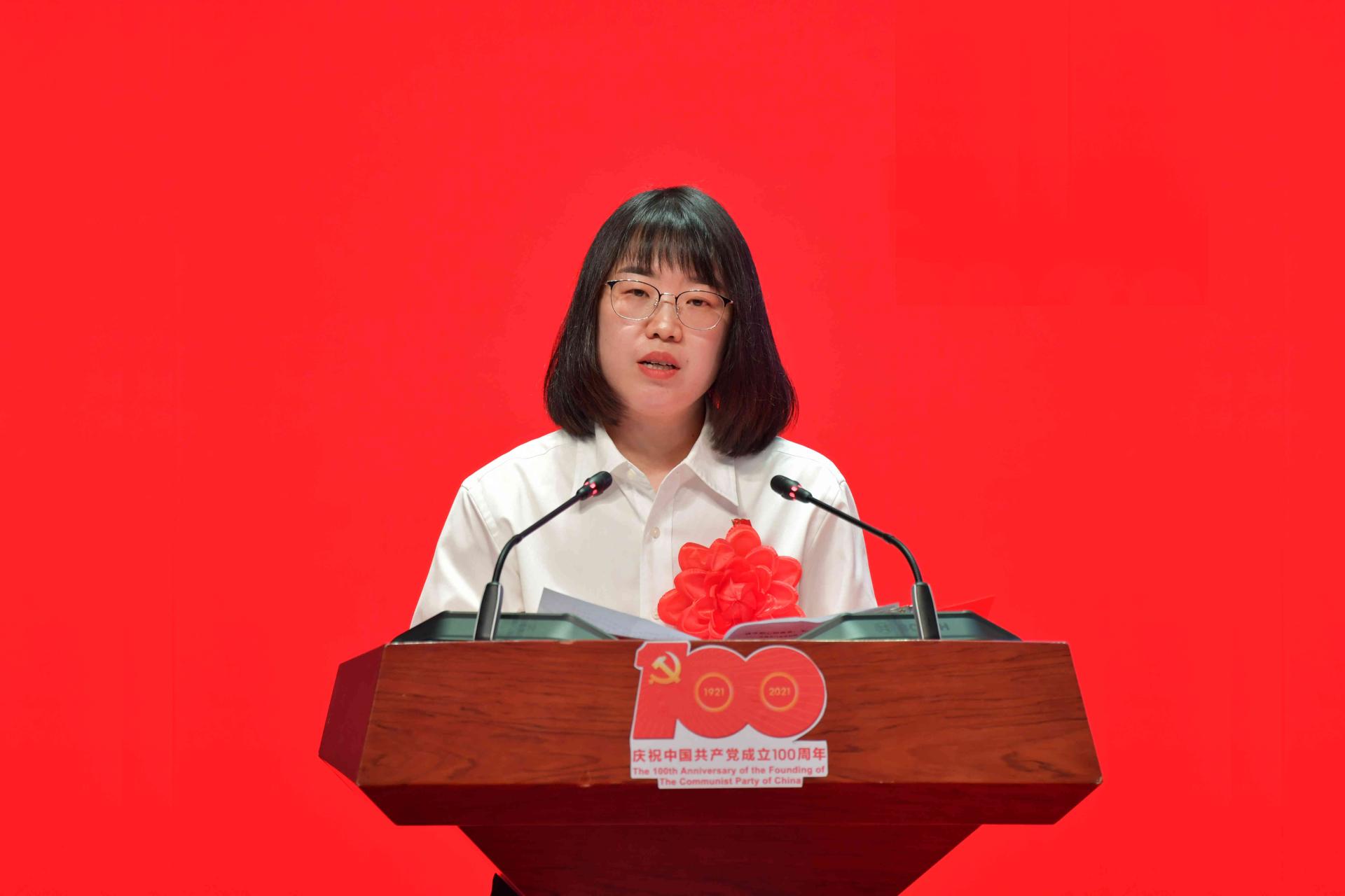 “光榮在黨50年”紀念章獲得者代表,學校原黨委副書記、紀委書記廖明銓通過“初心的故事”“奮斗的故事”“傳承的故事”深情詮釋了一名老黨員初心不改感黨恩、聽黨話、跟黨走,一顆紅心獻給黨,為黨的事業奮斗終身的真摯赤誠。教授代表李萍從一個承前啟后的西財人視角,深情講述了一代代西財學者堅持“一個內核”、鑄造“一座燈塔”、傳承“一種情懷”,在黨的堅強領導下傳承學科紅色基因,在大師先賢引導下傳道受業解惑,在師者情懷熏陶下潛心立德樹人的雋永篇章。先進基層黨組織代表陳宗權回顧了在學校黨委堅強領導下,基層黨組織用團結偉力堅決打贏脫貧攻堅戰,用組織偉力堅決打贏疫情防控阻擊戰和平安校園保衛戰,用奮斗偉力堅決打贏改革攻堅戰、發展持久戰,充分展現基層黨組織深厚凝聚力、強大組織力、高效執行力的生動實踐。優秀共產黨員、優秀黨務工作者代表張諦用“擔當”“責任”“踐行”三個關鍵詞背后的故事,生動再現了西財共產黨員在地震、疫情等危急時刻挺身而出,在脫貧攻堅戰場堅決貫徹落實組織決策部署,在生活工作中為師生辦實事解難事的擔當與奉獻。青年教師代表王翔宇認為“有理想信念”是當今這個時代教育強國道路上人民教師的第一身份印記,立志和所有青年教師一起,做最忠誠、最堅定的馬克思主義傳播者,以“四有好老師”“四個相統一”“六個要”為師德大道,為實現民族復興偉業釋放能量。學生黨員代表劉彥深情回顧了自己太爺爺一生忠于黨、獻身黨的紅色故事,講述了自己傳承紅色基因,聽黨話、跟黨走,在西部計劃中致力教育扶貧,努力讓青春在為祖國、為民族、為人民的不懈奮斗中綻放絢麗之花的珍貴記憶。