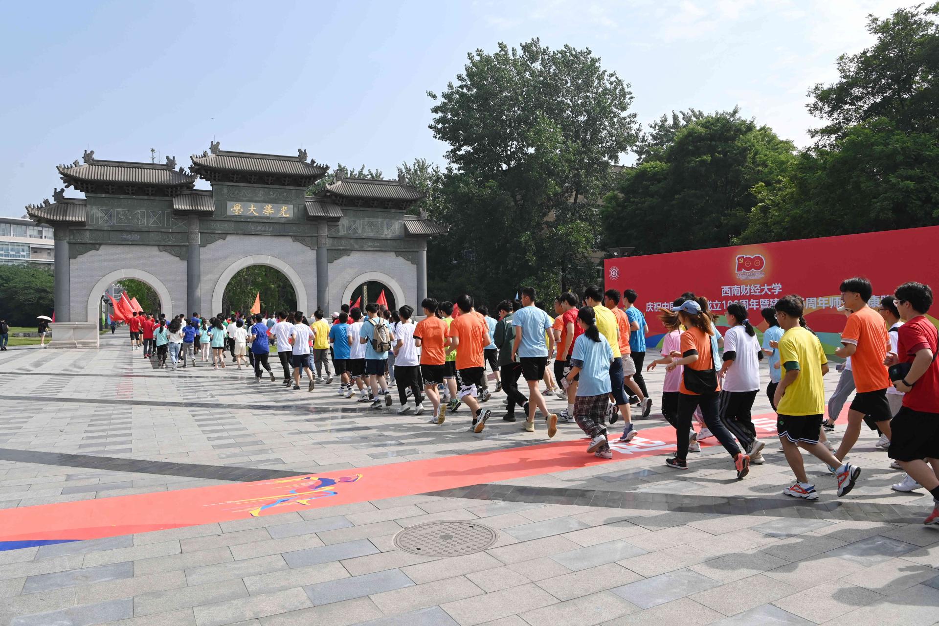 6月2日,西南財經大學在柳林校區舉行慶祝中國共產黨成立100周年暨建校96周年師生健康跑,以寓教于行、健康向上的體育運動進一步激發師生愛黨愛國愛校熱情,用赤誠飽滿、昂揚奮發的師生風貌向黨的百年華誕和建校紀念日獻禮。校領導趙德武、卓志、彭龍、曾道榮、范衛宏、史代敏、張邦富,中層干部、教職工和學生代表參加健康跑。