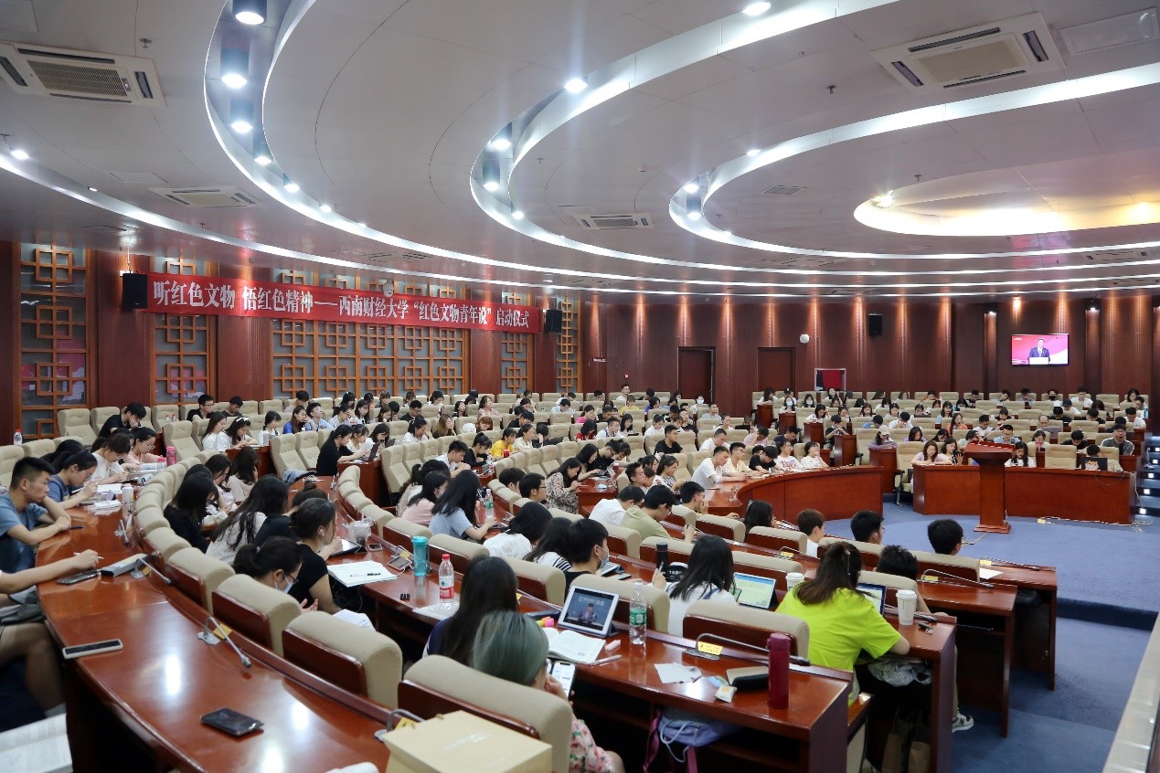 啟動儀式上,全國三十多所高校的師生代表在主會場參加啟動儀式,來自北京師范大學等4所高校的4位同學現場進行了紅色文物講述。我校2020級經濟與貿易類專業的汪韞珂同學參與了微黨課視頻錄制,她講述的文物故事是《見證人民幣誕生的圓盤印碼機》,圓盤印碼機不僅見證了那段輝煌的歷史,也勉勵西財學子傳承紅色基因,弘揚紅色精神。