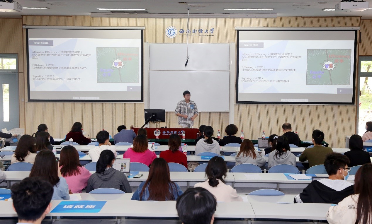“微觀經(jīng)濟(jì)學(xué)”課程主講人胡文翔龍同學(xué),從微觀經(jīng)濟(jì)學(xué)開篇第一課供求模型入手,用鮮活的例子證明了中國特色社會主義制度的優(yōu)越性,把“制度自信”貫徹在專業(yè)理論中。“我們的制度自信有堅實的基礎(chǔ),有充足的底氣!”