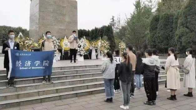 聚焦青年重點(diǎn),開(kāi)展現(xiàn)場(chǎng)祭奠追思活動(dòng)。校團(tuán)委學(xué)生會(huì)、研究生會(huì),馬克思主義學(xué)院研究生黨支部、經(jīng)濟(jì)學(xué)院學(xué)生會(huì)和國(guó)際商學(xué)院學(xué)生會(huì)等分別組織青年學(xué)子走出校園,前往成都市青羊區(qū)十二橋烈士墓和成都市烈士陵園等場(chǎng)所開(kāi)展祭奠追思活動(dòng)。在烈士陵園等祭奠場(chǎng)所,同學(xué)們齊唱國(guó)歌,向革命先烈鞠躬致哀、敬獻(xiàn)鮮花,并面對(duì)鮮紅黨旗重溫入黨誓詞。同學(xué)們還參觀了烈士墓展覽墻、烈士紀(jì)念館等,聆聽(tīng)英烈事跡講述,追尋紅色記憶、傳承紅色精神、汲取紅色滋養(yǎng)。