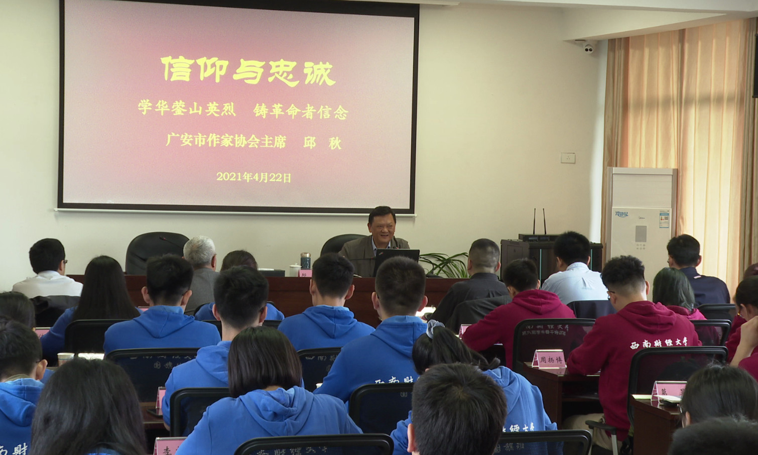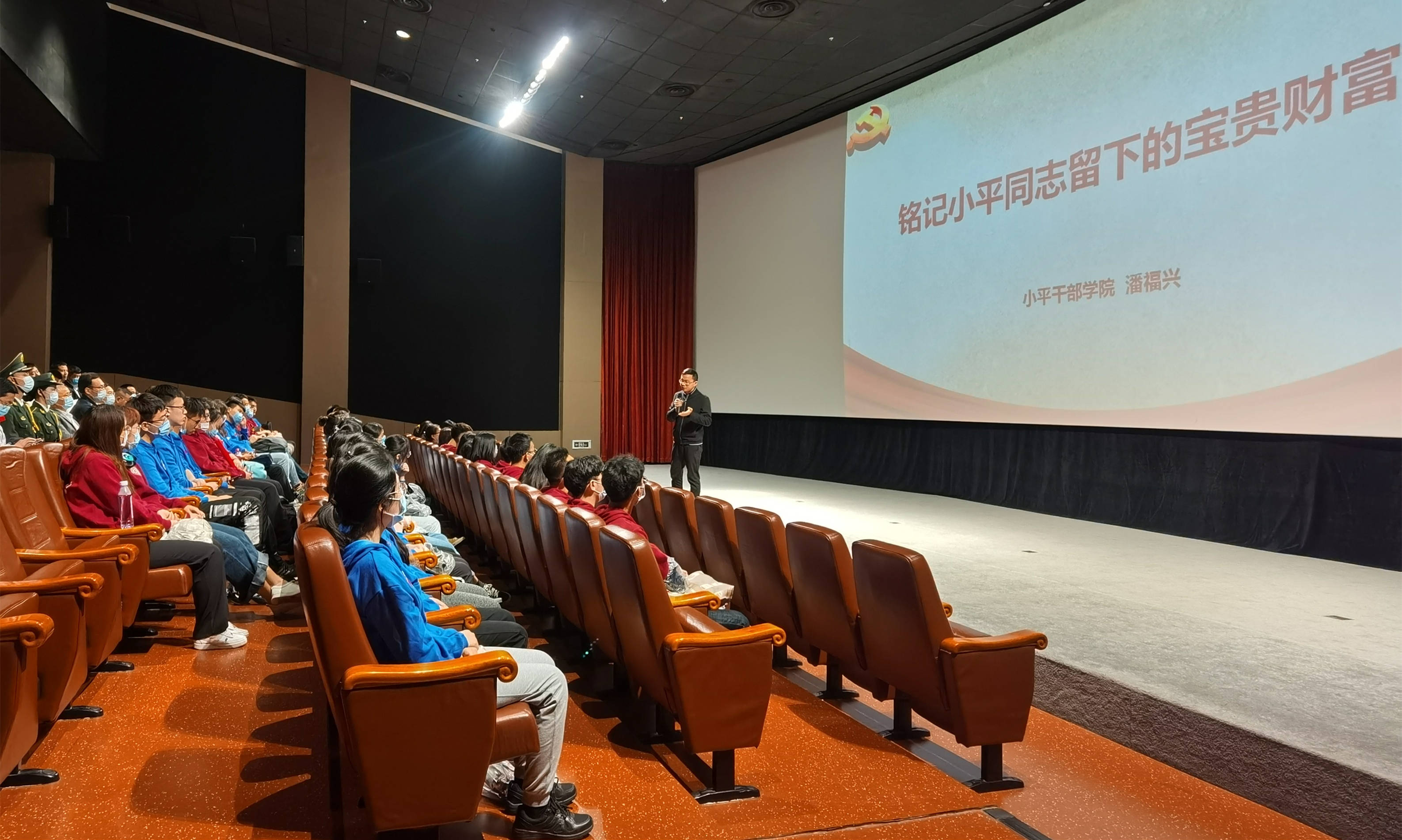 在現場教學環節,師生們參觀了鄧小平故居陳列館、鄧小平緬懷館和鄧小平故居。在小平銅像廣場,師生們懷著無比崇敬的心情瞻仰了小平銅像并敬獻了花籃,黨員同志集體重溫了入黨誓詞。通過講解員詳實講述和參觀珍貴的歷史文物、豐富的文獻檔案,回顧了鄧小平同志在中國革命、現代化建設和改革開放歷史進程中做出的豐功偉績,更全面地了解了鄧小平同志波瀾壯闊的一生。在微黨課環節,小平干部學院潘福興老師以《銘記小平同志留下的寶貴財富》為題,通過“一條道路”“一個理論”“一套制度”“一系列精神風范”,講述了鄧小平同志是中國特色社會主義的開創者、鄧小平理論的主要創立者、改革開放和現代化建設的總設計師等豐功偉績和對人民無比熱愛的偉大情懷。在專題黨課環節,廣安市作家協會主席邱秋以《信仰與忠誠——學華鎣山英烈,筑革命者信念》為題,圍繞“星火”“信仰”“忠誠”“使命”四個篇章,飽含深情地講述了廣安籍英烈的革命故事,師生們深深感悟到革命先輩們堅定的信念和對黨的忠誠、對革命事業的堅持和奮斗。