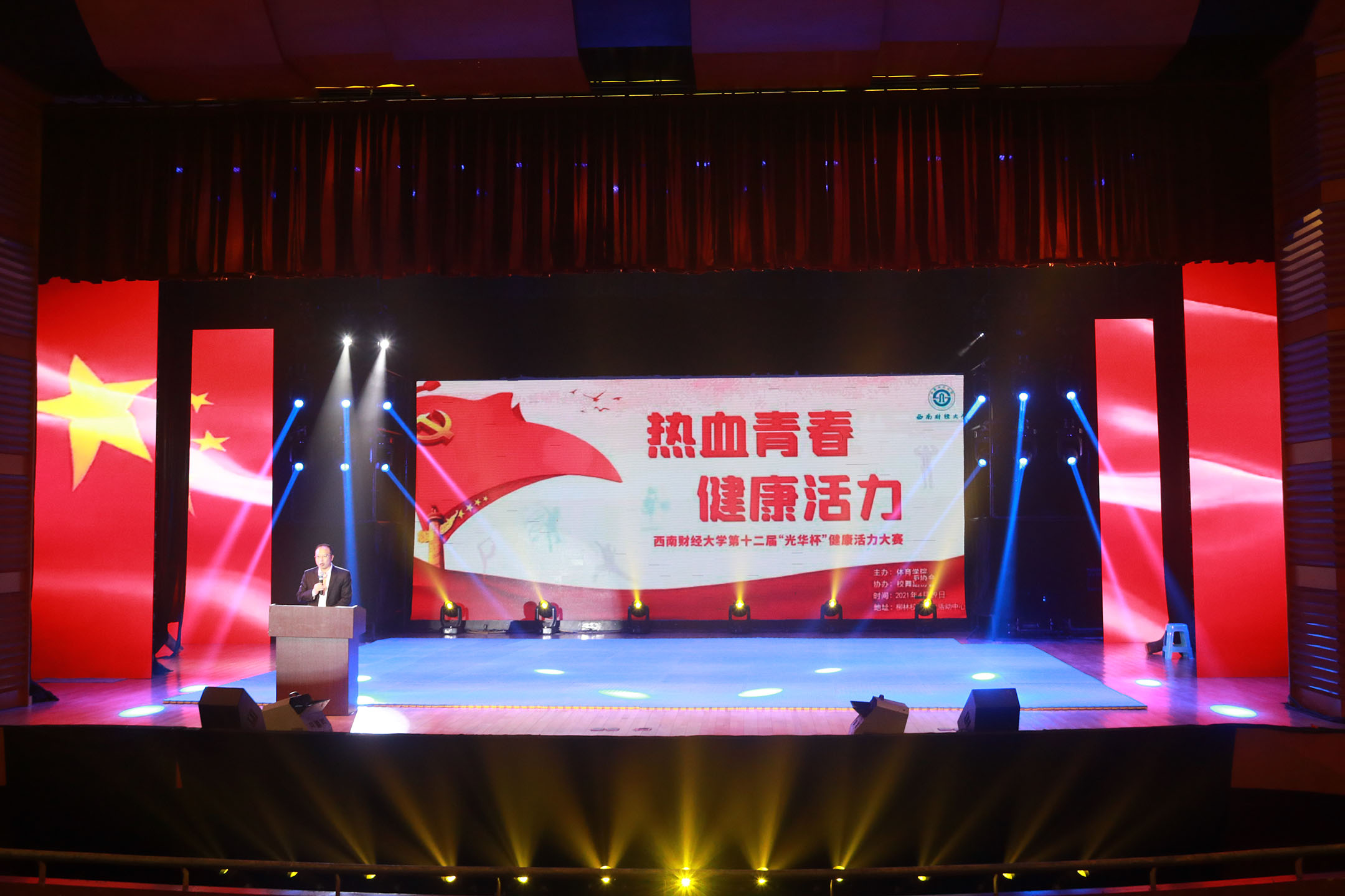 4月29日晚,學(xué)校第十二屆“光華杯”健康活力大賽匯報(bào)演出暨頒獎(jiǎng)晚會(huì)在學(xué)生活動(dòng)中心800人廳隆重舉行。黨委副書記曾道榮,黨委常委、副校長(zhǎng)李永強(qiáng),相關(guān)職能部門和學(xué)院(中心)負(fù)責(zé)人,體育學(xué)院全體教職工、獲獎(jiǎng)同學(xué)代表等參加晚會(huì)。