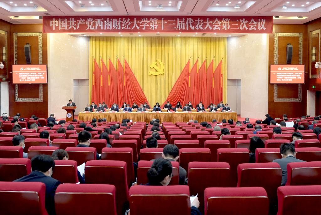 中國共產黨西南財經大學第十三屆代表大會第三次會議,于12月25日在學校柳林校區舉行。192名正式代表出席會議,18名列席代表和特邀代表參加會議,教育部高校黨建聯絡員羅中樞到會指導。