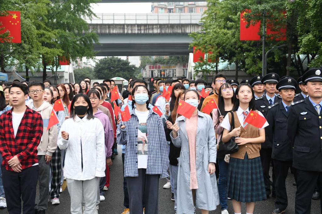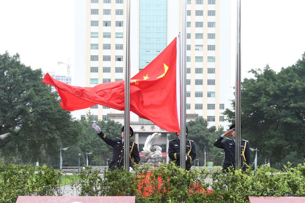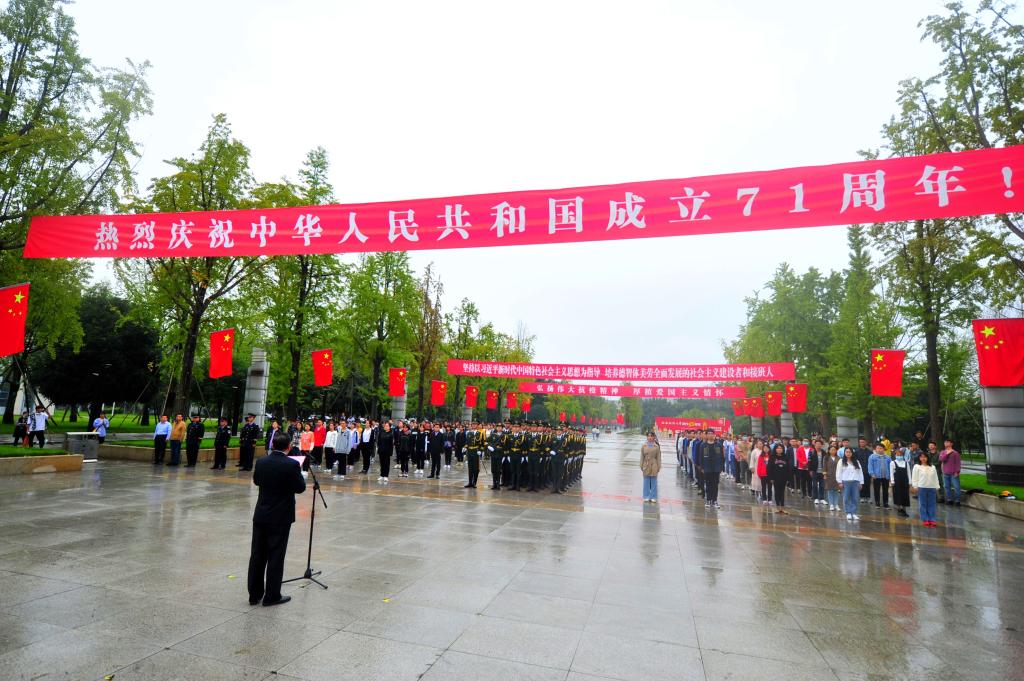 同慶“中國”節,家國共團圓。10月1日清晨,學校慶祝中華人民共和國成立71周年升國旗儀式在柳林校區、光華校區隆重舉行。200余名西財師生懷著激動而喜悅的心情,齊聚兩校區升旗臺,向偉大祖國獻禮,與全國人民一道為新中國慶賀生日。黨委常委、副校長史代敏與工商管理學院、統計學院師生代表,校衛隊員和國旗班成員等參加了柳林校區升國旗儀式;黨委常委、副校長張邦富與金融學院、會計學院、繼續(網絡)教育學院師生及校衛隊員等參加了光華校區升國旗儀式。相關職能部門和學院負責人主持升國旗儀式。