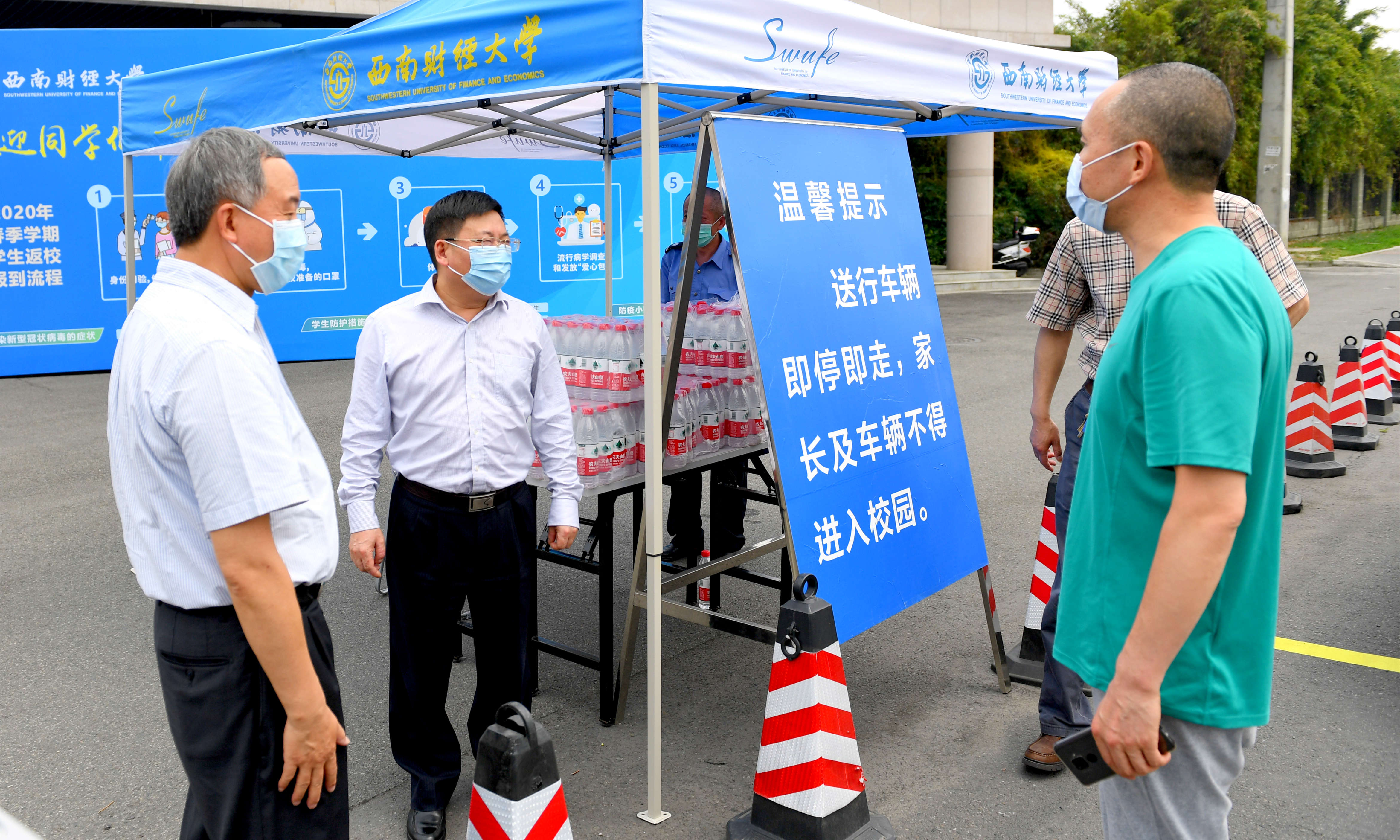 上午,黨委書記趙德武,校長、黨委副書記卓志等校領導來到返校報到點。