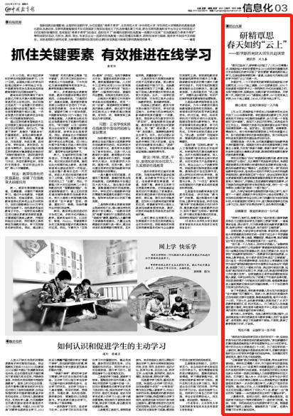 3月7日,《中國教育報》以《研精覃思春天如約“云上”——新學期西南財大師生共赴課堂》為題,深度報道西南財經大學“云端課堂”。