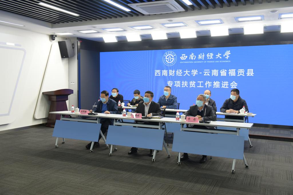 為扎實(shí)深入開(kāi)展我校對(duì)口幫扶滇西福貢縣專項(xiàng)扶貧工作,全力助推決戰(zhàn)決勝脫貧攻堅(jiān),4月14日,西南財(cái)經(jīng)大學(xué)—云南省福貢縣專項(xiàng)扶貧工作推進(jìn)視頻會(huì)召開(kāi)。學(xué)校黨委書記趙德武、校長(zhǎng)卓志、副校長(zhǎng)史代敏,福貢縣常務(wù)副縣長(zhǎng)李迎雨、組織部長(zhǎng)李佳錕、副縣長(zhǎng)張雪蓮、我校援派掛職副縣長(zhǎng)張?jiān)约拔倚!⒏X暱h相關(guān)部門負(fù)責(zé)人參加會(huì)議。黨委書記趙德武主持會(huì)議并講話。