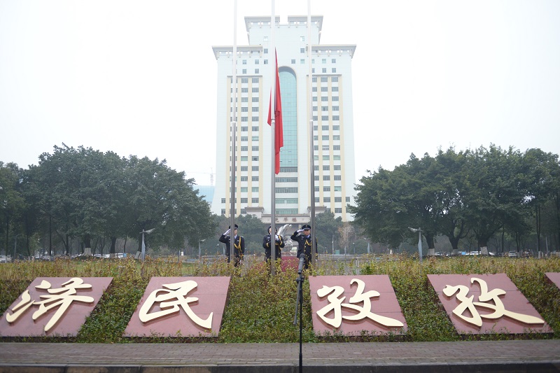 律回春暉漸,萬象始更新。2020年1月1日清晨,西南財經(jīng)大學(xué)元旦升國旗儀式在柳林校區(qū)與光華校區(qū)舉行。一夜的綿柔細雨滋潤了氣象一新的西財校園,在21世紀又一個嶄新十年的起點,200余名西財師生齊聚升旗點,莊嚴而喜悅地慶祝新年的到來。黨委副書記、紀委書記范衛(wèi)宏與證券與期貨學(xué)院學(xué)院、經(jīng)濟學(xué)院師生代表,校衛(wèi)隊員和國旗班成員等參加了柳林校區(qū)升國旗儀式;黨委常委、副校長尹慶雙與會計學(xué)院師生及校衛(wèi)隊員等參加了光華校區(qū)升國旗儀式。相關(guān)職能部門負責(zé)人主持升國旗儀式。