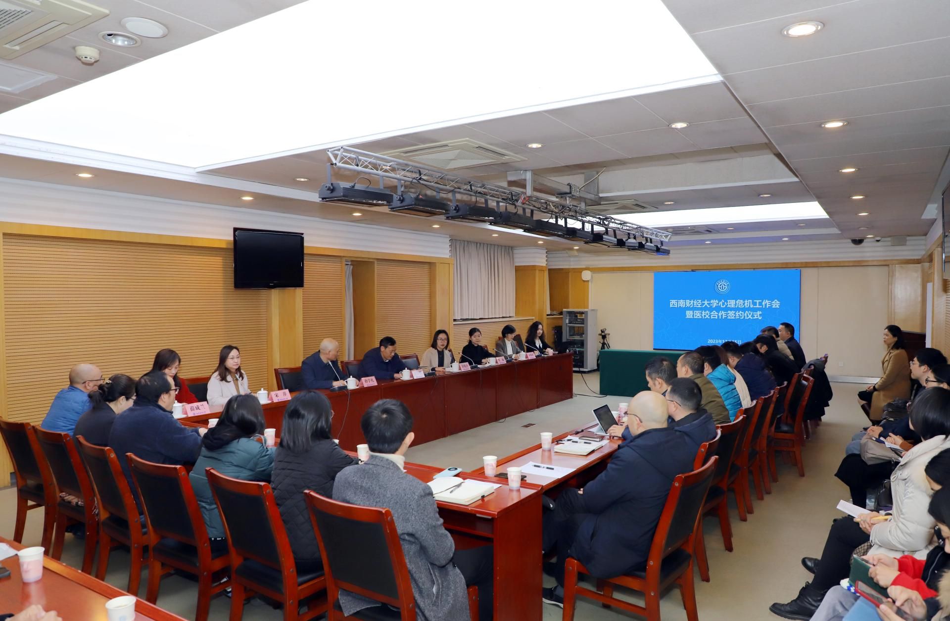 12月15日下午,學校在騰驤樓101會議室召開了2023年心理危機工作會暨醫校合作簽約儀式。學校黨委常委、副校長桂富強,衛生部華西醫院心理危機干預基地主任、四川西南司法鑒定中心主任孫學禮、四川省精神醫學中心黨總支副書記牟敏,各學院(研究院)副書記、心理工作聯系人以及心理健康教育中心全體專職教師參加會議。會議由心理健康教育中心主任許曉卉主持。