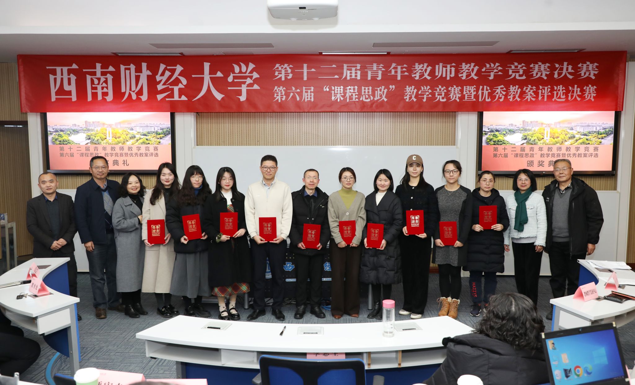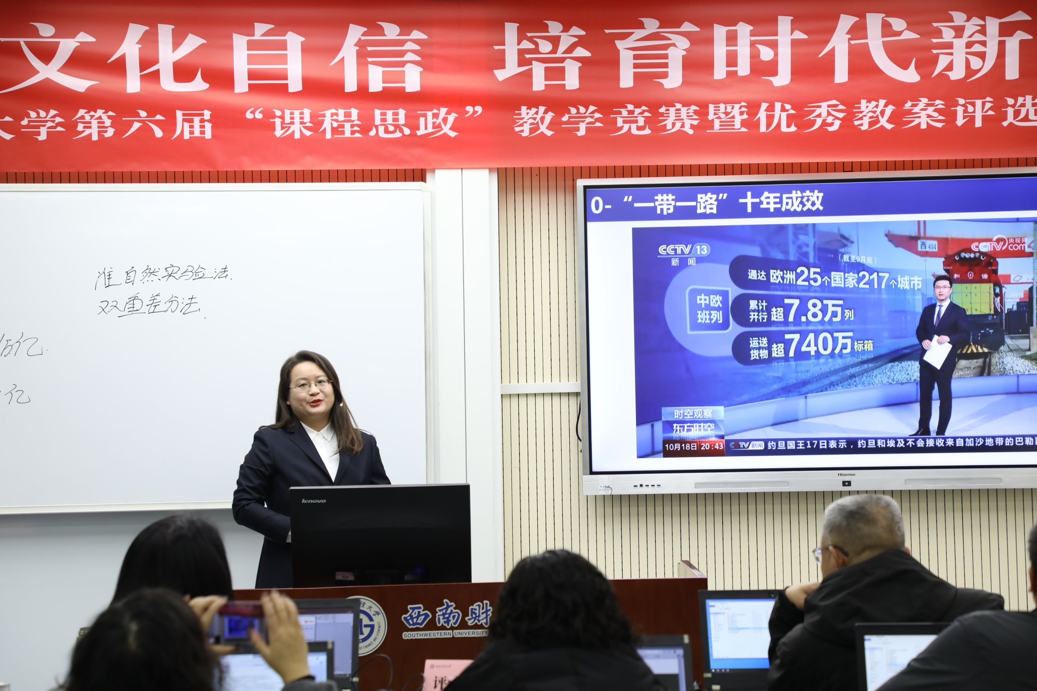 在決賽精彩激烈的氛圍中,金融學(xué)院、中國金融研究院陳汕老師結(jié)合現(xiàn)實(shí)投資場景生動解析了投資組合管理的建模邏輯與實(shí)務(wù)應(yīng)用,馬克思主義學(xué)院袁上老師從歷史細(xì)節(jié)入手深入地闡明了近代中國反侵略戰(zhàn)爭失敗的軍事原因,兩位老師榮獲第十二屆青年教師教學(xué)競賽一等獎(jiǎng)。體育學(xué)院簡家俊老師從五育融合的角度精辟地分析了近年來熱議的青少年身心健康的重要價(jià)值,數(shù)學(xué)學(xué)院方敏老師用手工制作的道具精彩地闡釋了割圓術(shù)的原理,國際商學(xué)院蒲岳老師基于政策評估前沿方法深刻地剖析了共建“一帶一路”十年來取得的建設(shè)成效,三位老師榮獲第六屆“課程思政”教學(xué)競賽暨優(yōu)秀教案評選一等獎(jiǎng)。兩項(xiàng)賽事中,共有10位教師獲得二等獎(jiǎng),15位教師獲得三等獎(jiǎng),10家單位獲得優(yōu)秀組織獎(jiǎng)。參賽教師紛紛表示通過競賽既切磋了技藝,又開拓了視野,還找到了努力的方向。