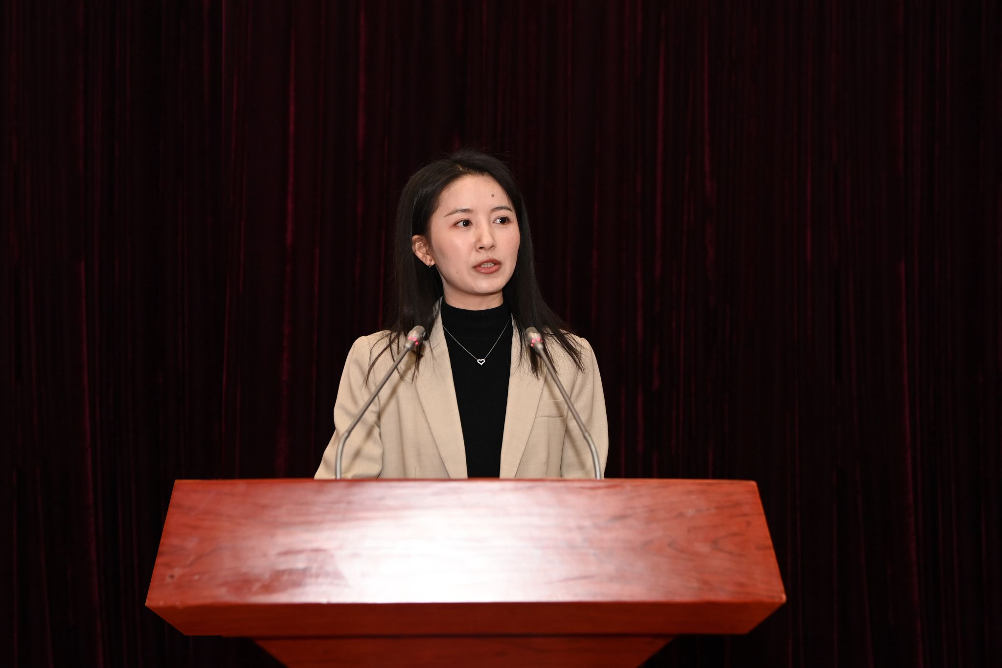 學?!皠谀Ec教職工創新工作室”領銜人代表王翔宇發言,表示將大力弘揚勞模精神、勞動精神、工匠精神,以勞模工匠示范作用帶動更多的年輕教師熱愛教學、敬畏知識、崇尚科學、關愛學生,形成勞動光榮的校園風尚和精益求精的敬業風氣。