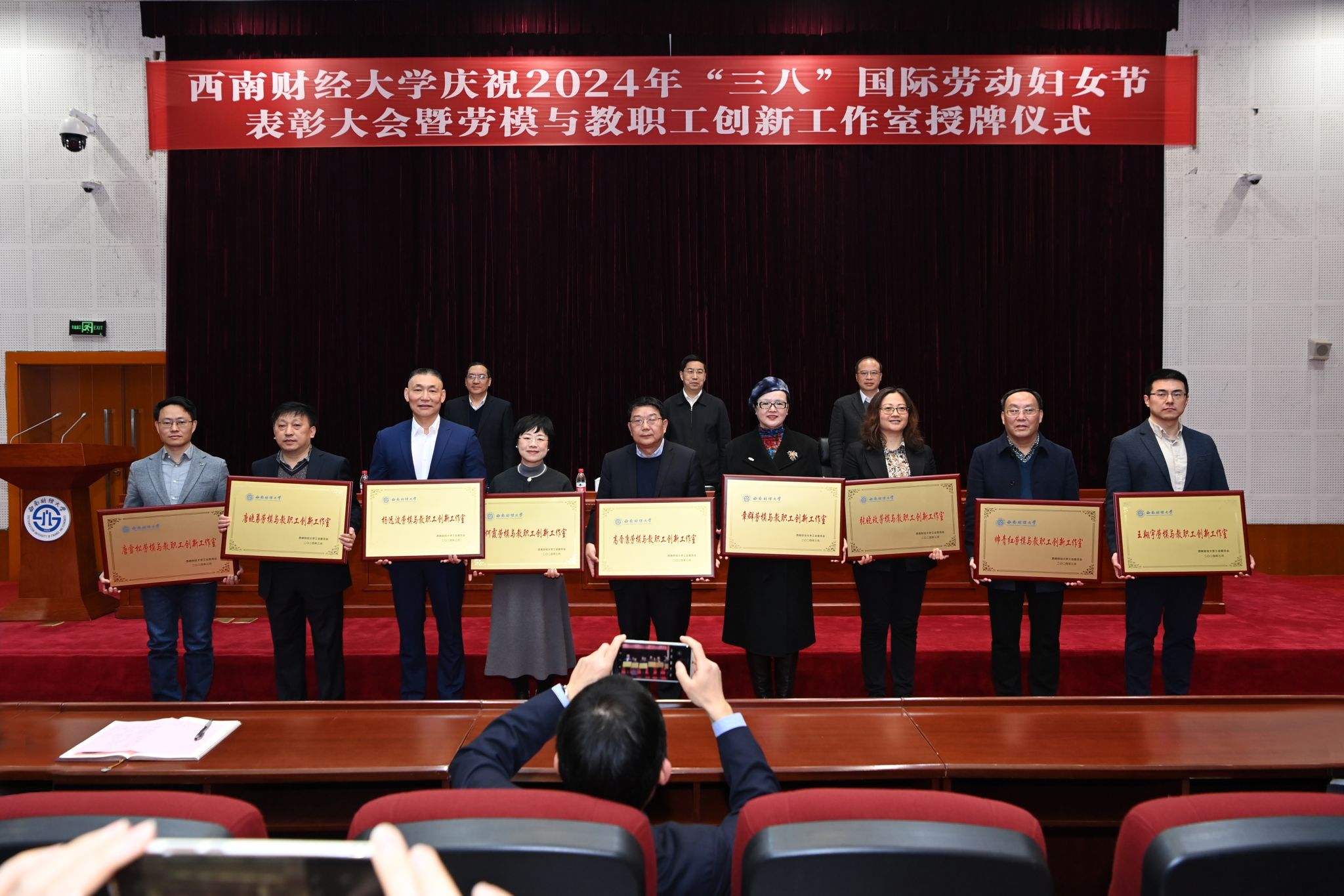會上,史代敏宣讀表彰決定和首批“勞模與教職工創新工作室”名單。學校領導為受到表彰的個人頒發證書,送上節日的鮮花,并為以全國“五一”勞動獎章獲得者高晉康教授和全國“三八”紅旗手章群教授為代表的9個“勞模與教職工創新工作室”授牌。