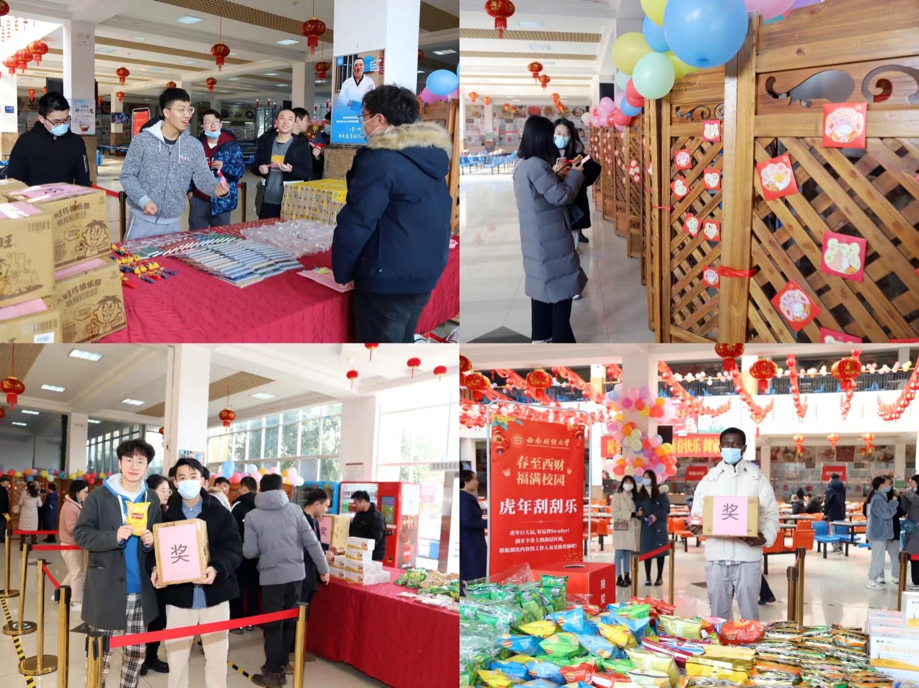 團拜會現場張燈結彩、暖意濃濃,處處洋溢著一派喜慶的氛圍。師生們一邊猜燈謎、刮福卡,一邊吃著琳瑯滿目、美味可口獨具四川年味的美食,還有學生和家里視頻直播學校的團拜會。學校給每一位寒假留校的學生精心準備了紅紅火火、大吉大利的“壓歲包”,希望把新的一年的祝福和好運都帶給他們。留校同學們紛紛表示,學校的年味兒濃,人情味兒也濃,一派喜慶熱鬧的節日氛圍,希望在即將到來的壬寅虎年能虎虎生威、爭創佳績。