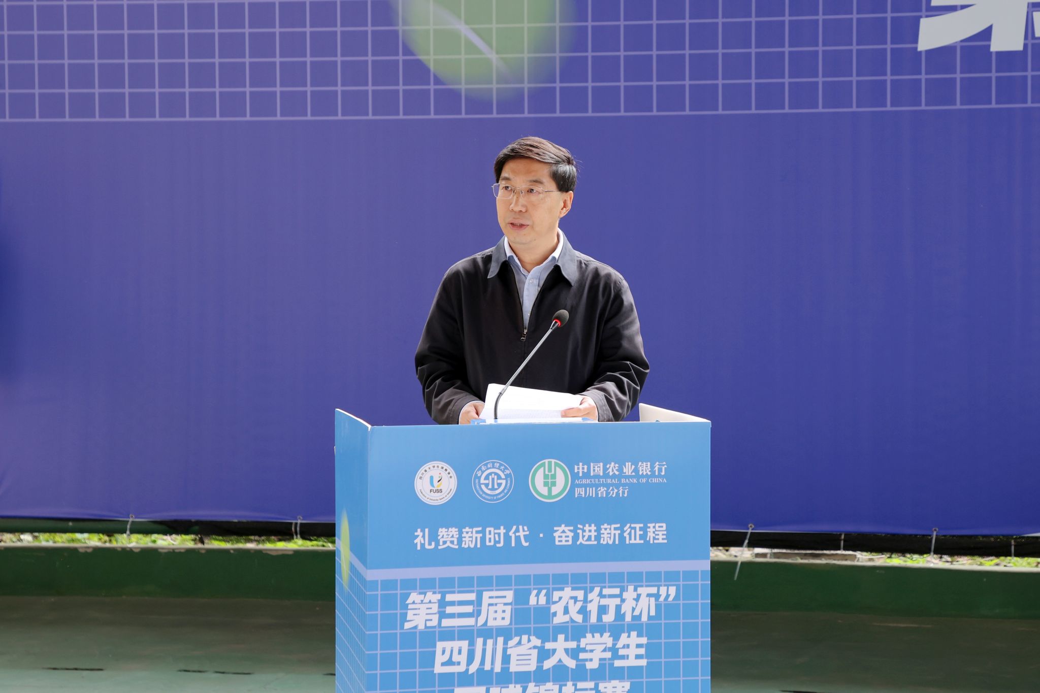 5月11-12日,由四川省教育廳指導、四川省大學生體育協會主辦、西南財經大學承辦、中國農業銀行四川省分行聯辦的第三屆“農行杯”四川省大學生網球錦標賽在學校柳林校區舉行,全省56支代表隊和800余名運動員、教練員、裁判員參加比賽。四川省政協黨組副書記、副主席鐘勉出席開幕式并宣布比賽開幕,中國農業銀行股份有限公司四川省分行黨委書記、行長孫景偉和學校黨委書記趙建軍分別在開幕式致辭,黨委常委、副校長李志生主持開幕式。